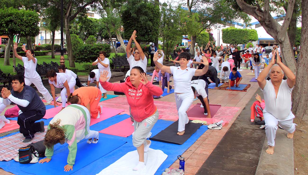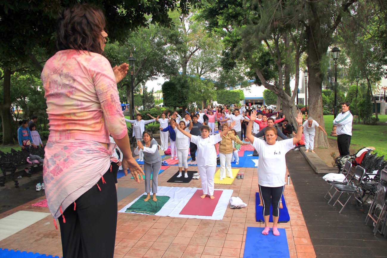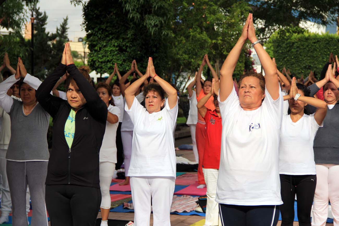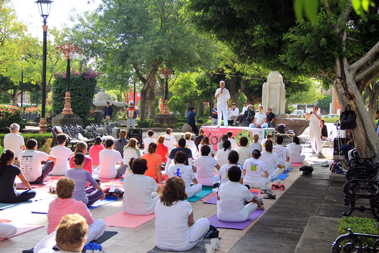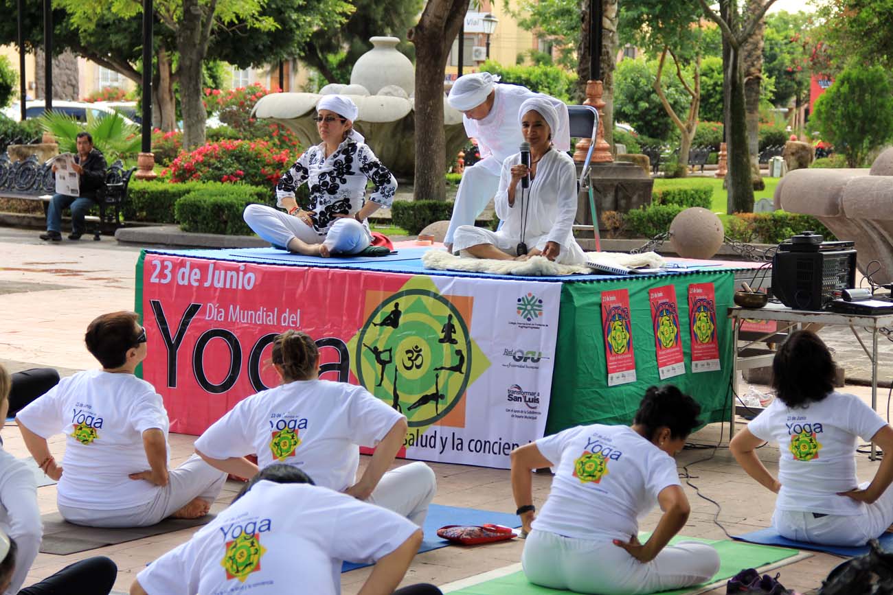 Por segundo año consecutivo se celebró en San Luis Potosí con el Día Mundial del Yoga, y este domingo en el andador central del Jardín de Tequis, de 9:00 a 11:00 horas se llevó a cabo con la presencia de más de 150 participantes que practican esta disciplina una práctica masiva de Yoga