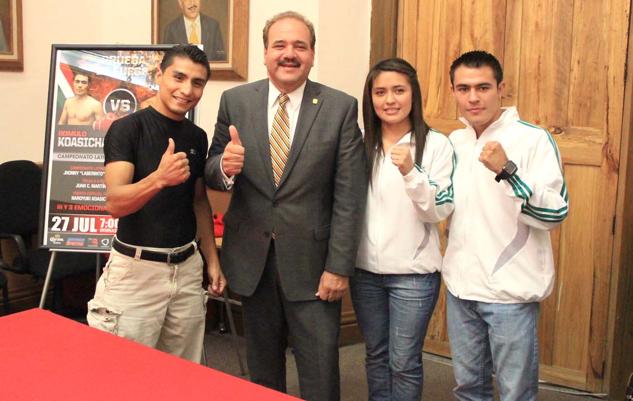 Por su parte Rómulo Eiko Koasicha agradeció al Presidente la oportunidad de traer la pelea profesional a su ciudad, “Presidente le agradezco que nos dé esta oportunidad de mostrarnos en nuestra tierra, hace cuatro años que no disputo una pelea en mi casa y esta será sin duda una gran noche para nosotros y para en lo particular ya que buscare el campeonato latino pluma de la W.B.O.”