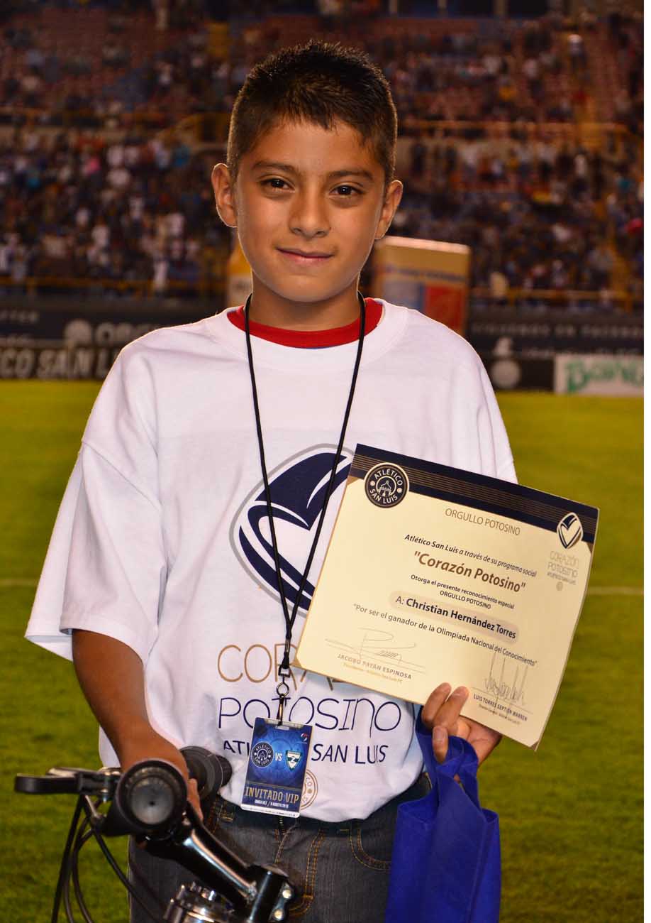 - El Atlético San Luis reconoce como “ORGULLO POTOSINO 2013”, al niño Christian Hernández, ganador de la Olimpiada Nacional del Conocimiento.