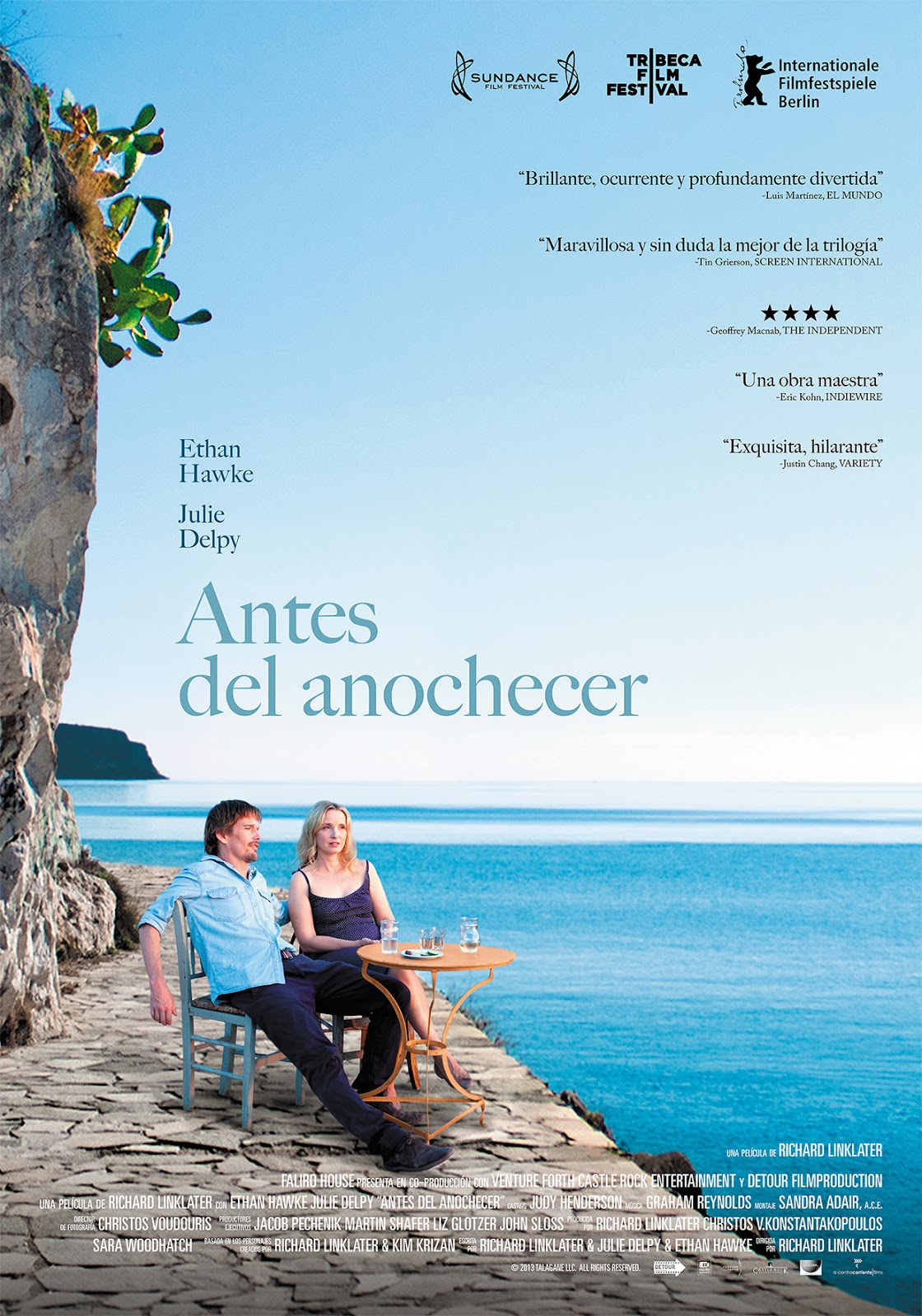 ¿Qué más puede hacer una pareja que lleva mucho tiempo junta, cuando está en una elegante habitación de hotel, aparte de olvidarse de las preocupaciones y las responsabilidades, quitarse la ropa y hacer el amor? Pero en el caso de Jesse y Céline, la realidad se entromete: el peso de los hijos, el trabajo, las ambiciones personales, las decepciones, las idas y venidas del amor romántico, la tensión causada por una relación que evoluciona y se profundiza. Su idílica noche los pone a prueba de manera inesperada. Jesse y Céline se conocieron cuando tenían veinte años en BEFORE SUNRISE (1995), y se reencontraron cuanto tenían treinta en BEFORE SUNSET (2004). Ahora, en ANTES DE LA MEDIA NOCHE se enfrentan al pasado, al presente y al futuro, a la familia, al romance y al amor. Antes de que el reloj marque la media noche, su historia de desarrolla de nuevo.