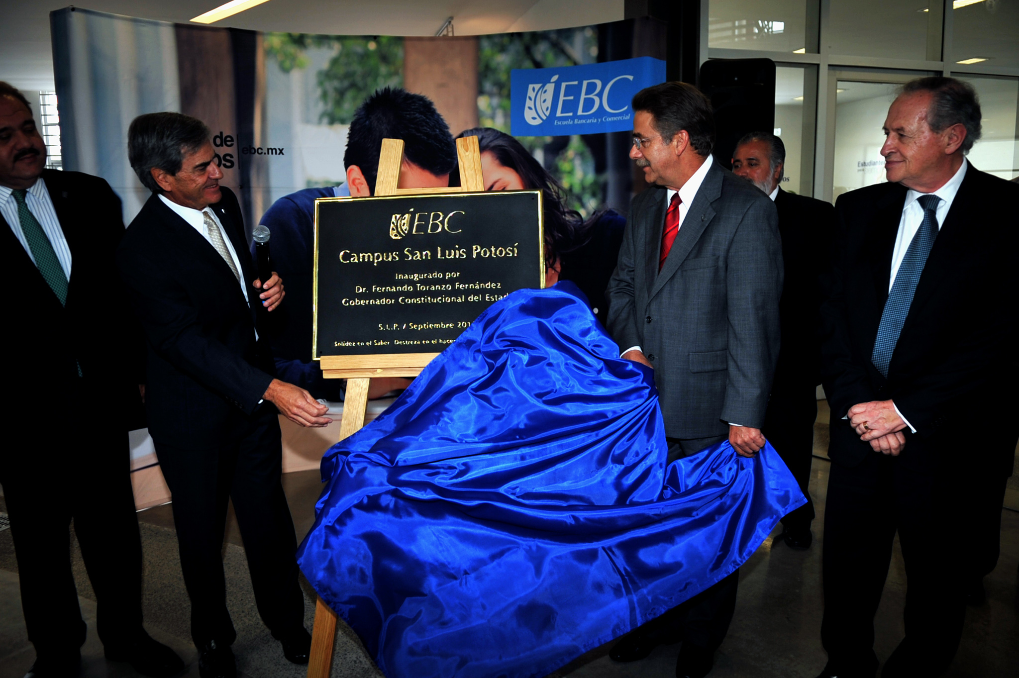 La escuela se ubica en los terrenos donde estaba la Industrial Minera México; iniciará con 200 alumnos y se espera legar a mil 200, en el lapso de 5 años. El rector de la Universidad, Javier Prieto Sierra expresó en la ceremonia inaugural, su compromiso indeclinable de luchar de la mano con las autoridades locales para canalizar el firme desarrollo de San Luis Potosí. La iniciativa de la Escuela Bancaria Comercial, institución laica, incluyente y 100 por ciento mexicana, ya cumplió 85 años, y fue fundada por don Manuel Gómez Morín. En la actualidad cuenta con 10 planteles en donde estudian más de 12 mil jóvenes, en tanto que hay 140 mil ex alumnos. El titular del Poder Ejecutivo señaló que la Escuela Bancaria Comercial es una Institución ancla que participa del ambicioso proyecto de un grupo de empresarios mexicanos, encaminado a detonar un gran desarrollo urbano en los terrenos que por más de un siglo ocupó la Planta de Cobre de la Compañía Industrial Minera México. El proyecto contempla la construcción de nuevas áreas verdes, vivienda, oficinas y centros comerciales; el Parque Bicentenario y el Centro Logístico para la operación de los transportistas de la Planta de Zinc están en funciones, y forman parte de esta iniciativa indispensable para consolidar las ventajas competitivas de la Zona Metropolitana de San Luis Potosí. En la Escuela Bancaria Comercial se pueden cursar las carreras de administración; administración de negocios de comunicación y entretenimiento, administración hotelera y turística; comercio y negocios internacionales, Finanzas además de posgrados y especialidades, entre otras. Al concluir el evento, el doctor Toranzo, acompañado por directivos de la EBC y del alcalde Mario García Valdez, así como de alumnos y ex alumnos, develó la placa alusiva y realizó un recorrido por las instalaciones.