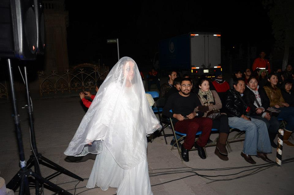 La representación que se realizó la noche del martes de la escenificación de Mitos y Leyendas, fue una versión breve de la que se realiza la noche del último viernes de cada mes en donde se crea una atmósfera más acorde con el tema de las leyendas urbanas sobre personajes que fueron conocidos por la gente de antaño, y que forman parte del patrimonio verbal de los habitantes de la ciudad de San Luis Potosí, y que sobreviven de generación en generación.