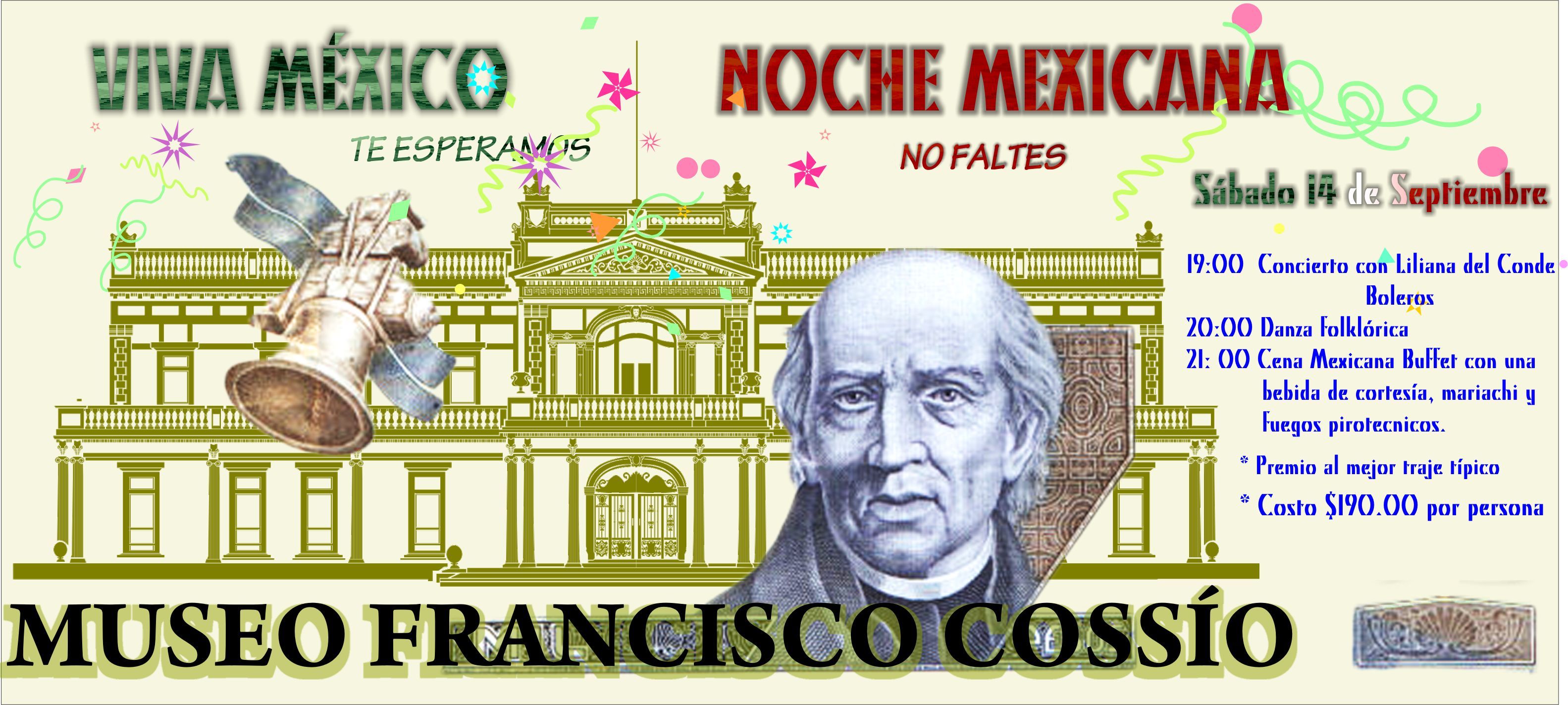 Con motivo de la celebración del 203 aniversario de la Independencia de México, el Museo Francisco Cossío invita a todo el público en general a participar en esta Noche Mexicana, que se llevará a cabo el sábado 14 de septiembre a partir de las 19 hrs. en las instalaciones de este recinto cultural.