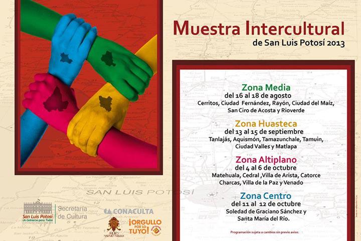 Así, con esta exposición se concluirán los eventos programados dentro de la Muestra Intercultural 2013 para la Zona Centro, durante la cual, con anterioridad se habían llevado grupos artísticos del altiplano a presentarse en la Zona Media; en la Zona Huasteca se recibieron las expresiones de la Zona Media, y el Altiplano recibió artistas de la Huasteca.