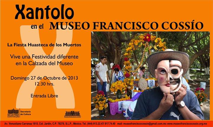 El Museo Francisco Cossío invita a todos los potosinos y público en general a iniciar las festividades del Día de Muertos en sus instalaciones ya que en este 2013, se presentará la fiesta tradicional de la Huasteca, El Xantolo, que se estará presentando en la Calzada de este museo el domingo 27 de octubre en punto de las 12:30 del día, la entrada es libre.