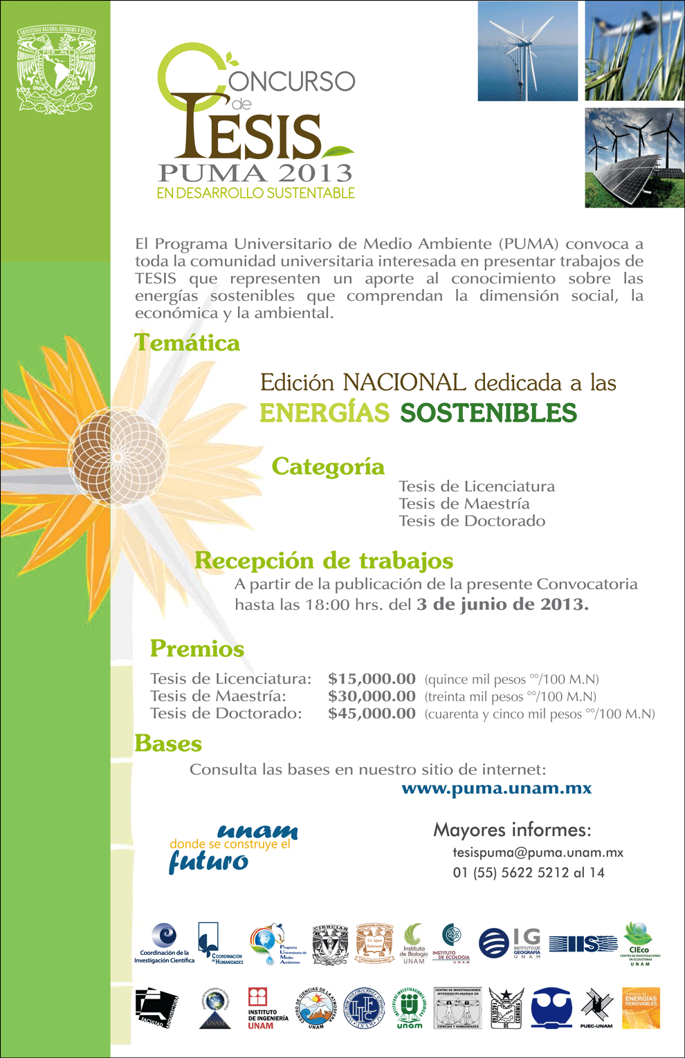 La tesis de Carrillo Reyes “Producción de Hidrogerno en reactores de biomasa fija, implicaciones de microorganismos hidrogenotróficos”, fue acreedora de una mención honorífica en la categoría de “Doctorado” del Tercer Concurso de Tesis PUMA en Desarrollo Sustentable, edición dedicada a las energías sostenibles de la Universidad Nacional Autónoma de México (UNAM).