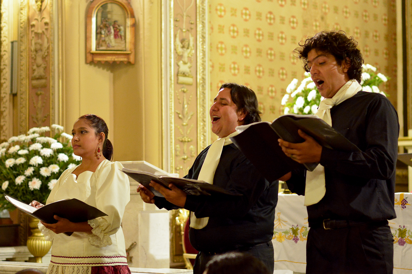En el Templo de San Agustín se presentó ENSAMBLE VITA NUOVA de la Universidad de Nuevo León, ofreciendo un concierto que incluyó coros y danzas al que titularon “Tente en el Ayre” Voces y Bayles Novohispanos, en el penúltimo día del XVI Festival de Música Antigua y Barroca “Los Fundadores”.