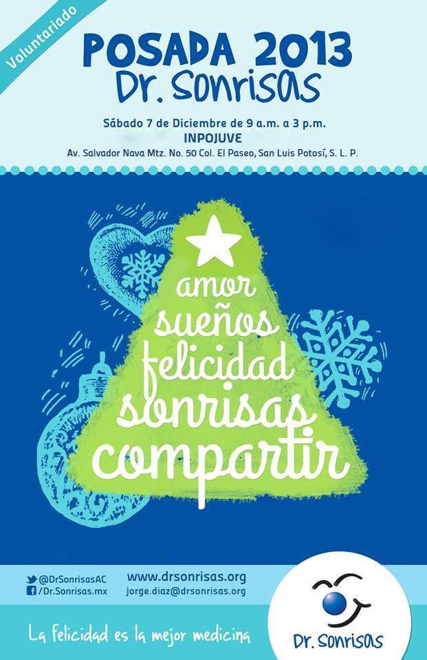 “La posada 2013 Dr Sonrisa” se realizará el próximo sábado 7 de diciembre de las 9:00 a las 15:00 horas en las instalaciones del Instituto Potosino de la Juventud, ubicado en Avenida Salvador Nava Martínez, número 50, en la colonia El Paseo, San Luis Potosí.