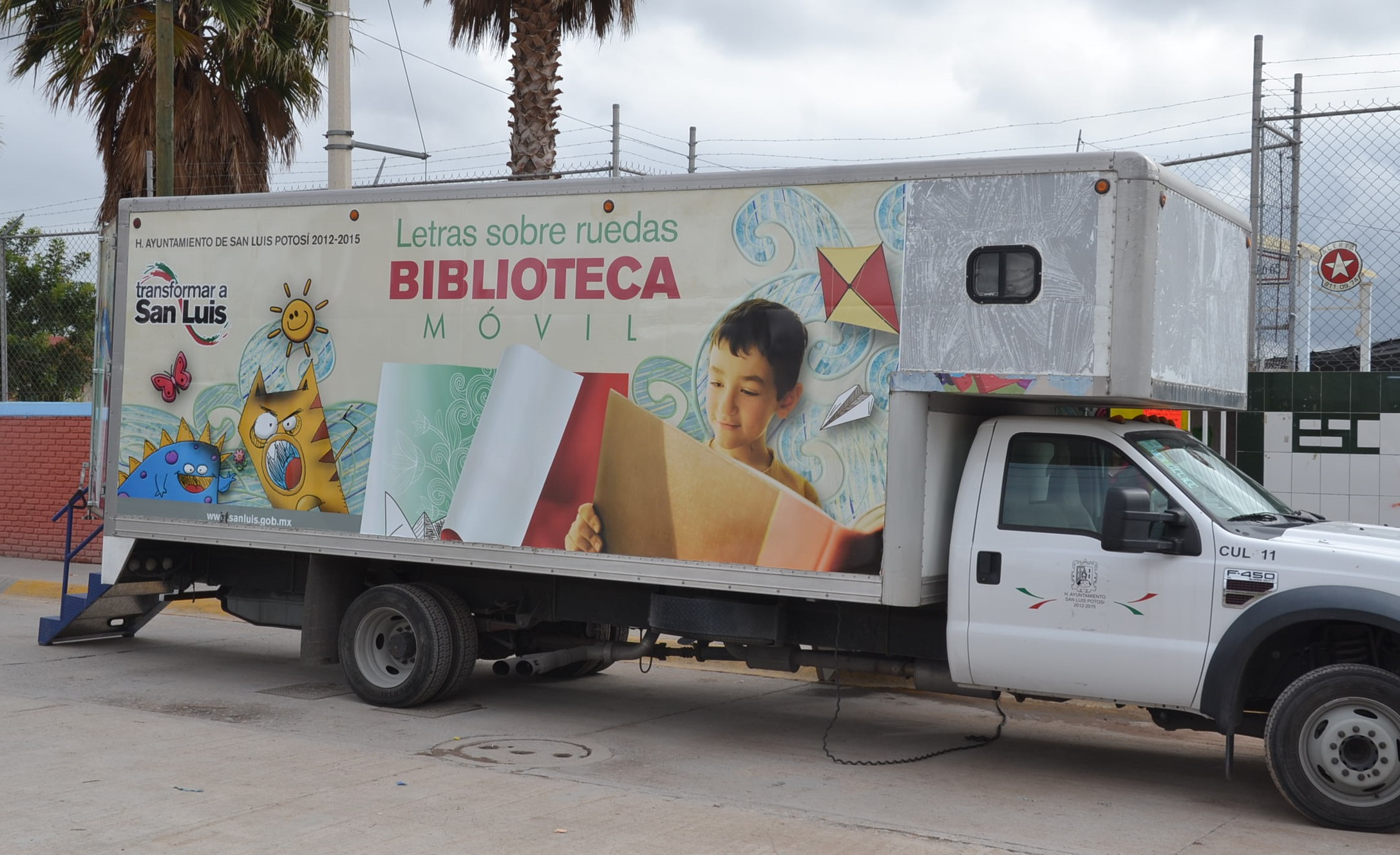 La Biblioteca móvil es un camión equipado con libros, mesas y juegos dinámicos, con el cual se visitan escuelas que existen en colonias y comunidades del municipio de San Luis Potosí, a fin de que cumpla con su función de ser un espacio de consulta, lectura e interacción, para la población estudiantil que cursa del primero hasta el sexto grado de primaria.