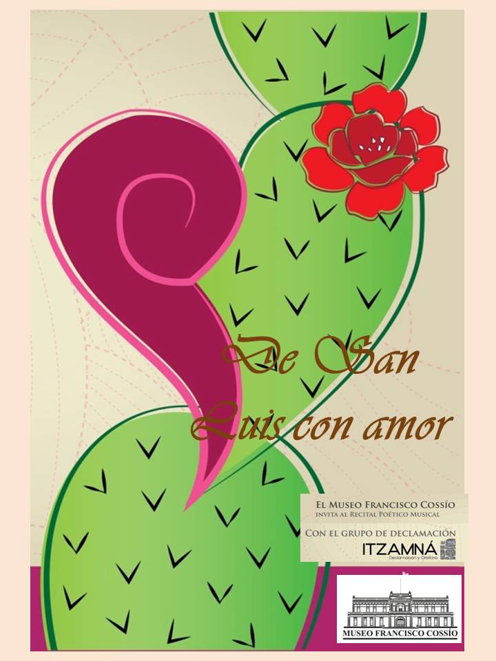 Este mes de febrero el Museo Francisco Cossío, con apoyo del Gobierno del Estado y la Secretaría de Cultura invita a su tradicional Recital Poético Musical con motivo del día del amor y la amistad en donde se presentará el grupo de declamación y oratoria TZAMNMÁ, en las instalaciones de este museo.