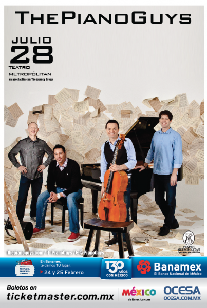 Estos 4 padres de familia, originarios de Utah, empezaron a hacer videos musicales sólo por diversión y su “hobby” se convirtió en un fenómeno mundial cuando sus videos en YouTube lograron juntar más de 240 millones de vistas. Recientemente, ThePianoGuys fueron firmados por la disquera Sony Masterworks, resultando ya en el lanzamiento de 3 álbumes de estudio: ThePiano Guys, The Piano Guys 2 y A Family Christmas. Éste último debutó en la posición #20 de la lista Billboard 200 en Estados Unidos.