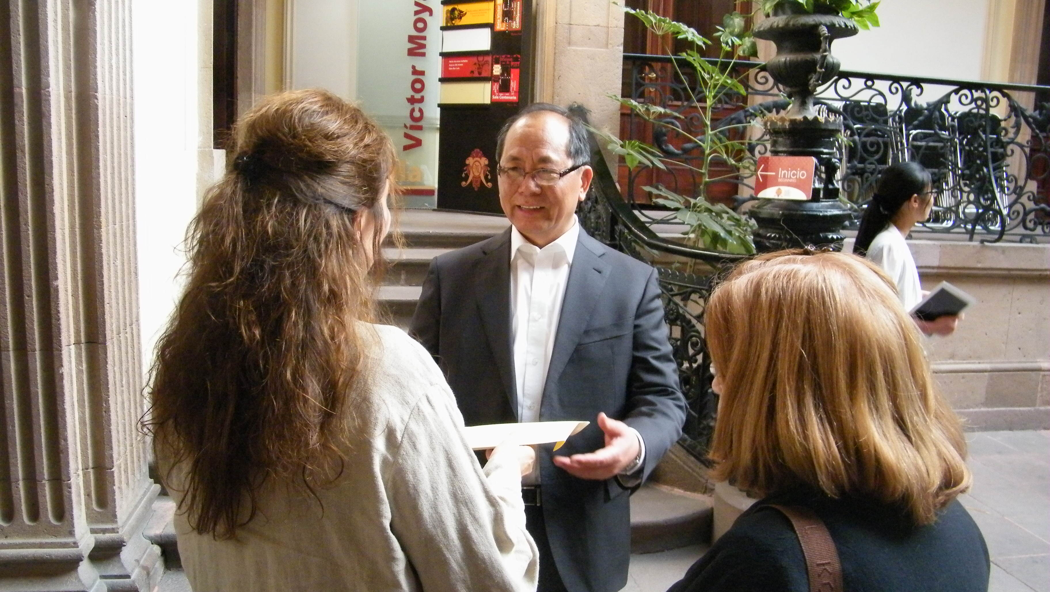 Aunque los lunes es un día de trabajo no abierto al público, la directora del museo, la maestra Marieta Bracho, recibió al diplomático alrededor de las 17:00 horas para ofrecerle un recorrido por las diferentes salas, dando inicio en la Sala Víctor Moya.