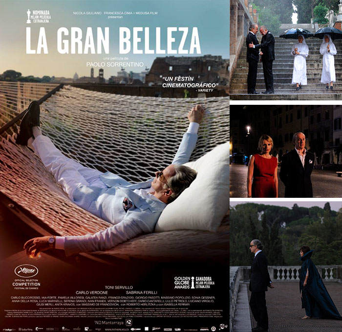 “Roma y La dolce vita son películas que no puedes ignorar cuando haces una película como esta. Son dos obras maestras y la regla de oro es verlas, no imitarlas. Yo intenté ceñirme a eso. Es verdad que las obras maestras transforman la forma en la que sentimos o percibimos las cosas. Nos condicionan. Por lo tanto no puedo negar que esas películas me hayan influenciado y guiado a la hora de hacer La Gran Belleza. Solo espero que me hayan guiado en la dirección adecuada”, confiesa Paolo Sorrentino, que escribe el guión junto a Umberto Contarello.