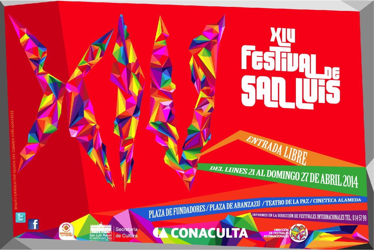 El Gobierno del Estado a través de la Secretaría de Cultura presenta del 21 al 27 de abril el XIV Festival San Luis, con un programa que incluye 70 eventos, tanto para la capital como para el interior del estado, entre éstos las actuaciones de artistas locales, nacionales y extranjeros, entre éstos Lila Downs y David Bisbal; funciones de ópera, exposiciones y teatro, grupos de rock, banda y pop, que tendrán como escenarios el majestuoso Teatro de la Paz, las Plazas de Aranzazú Fundadores, San Francisco y Cineteca Alameda.