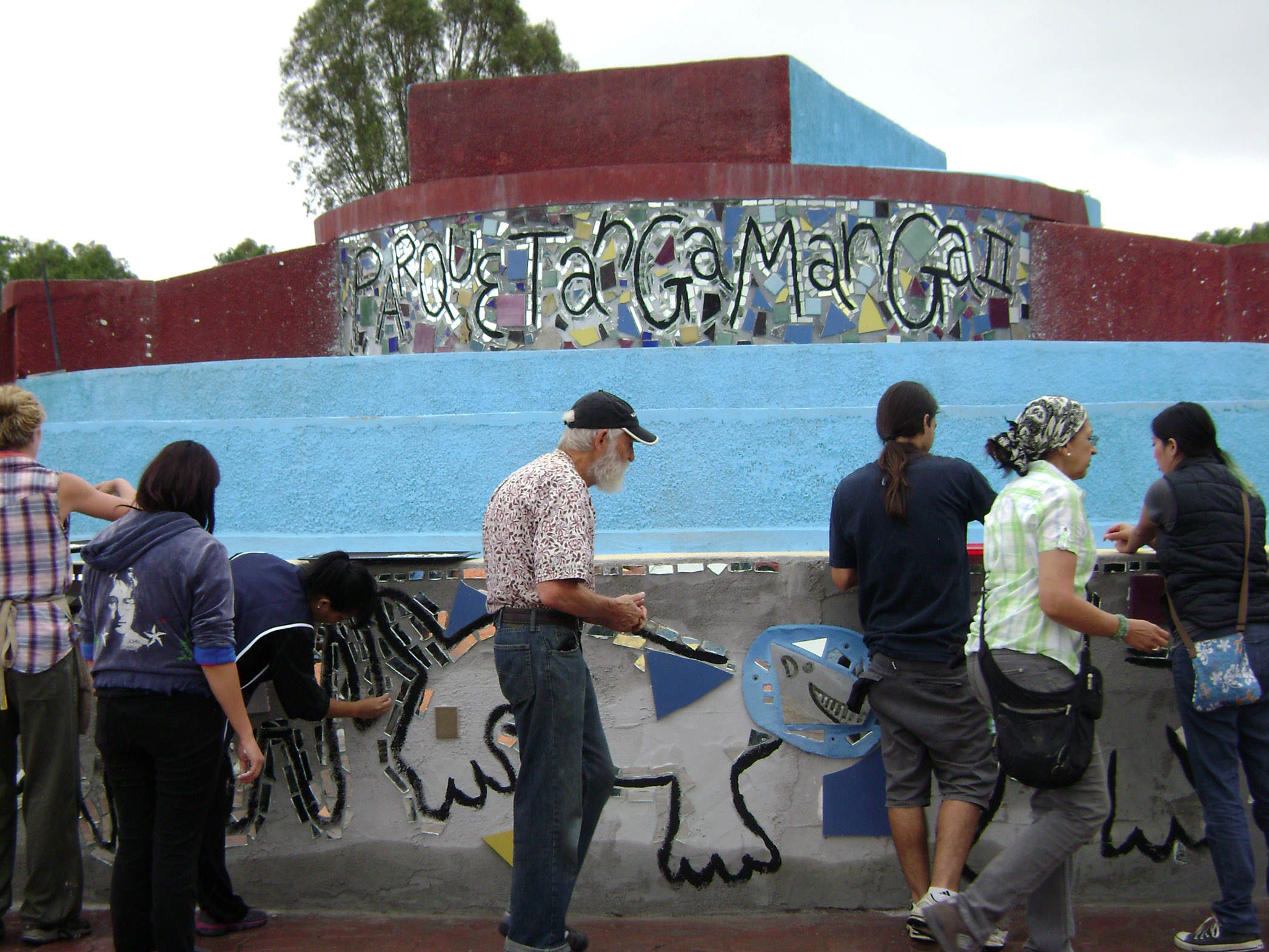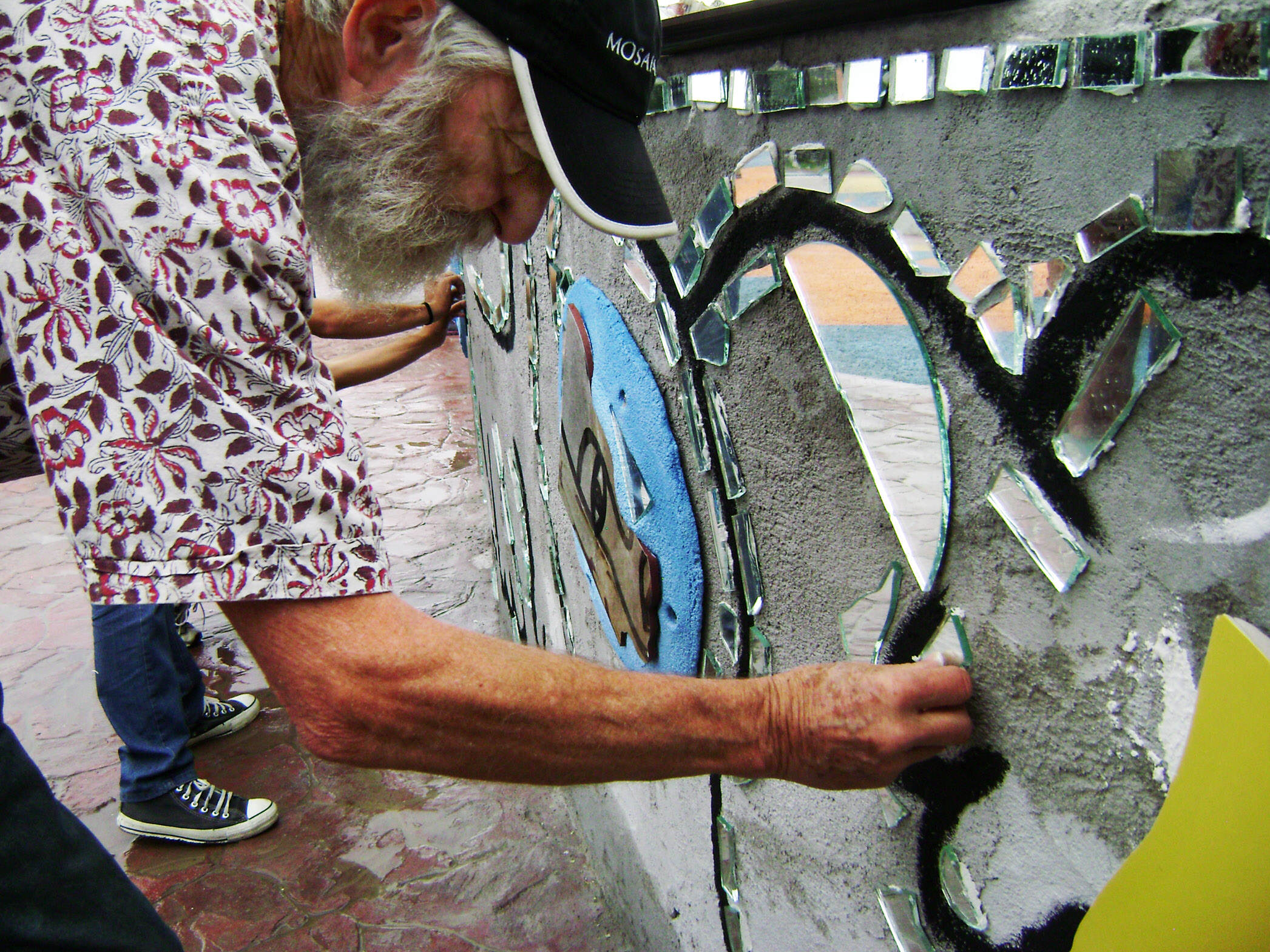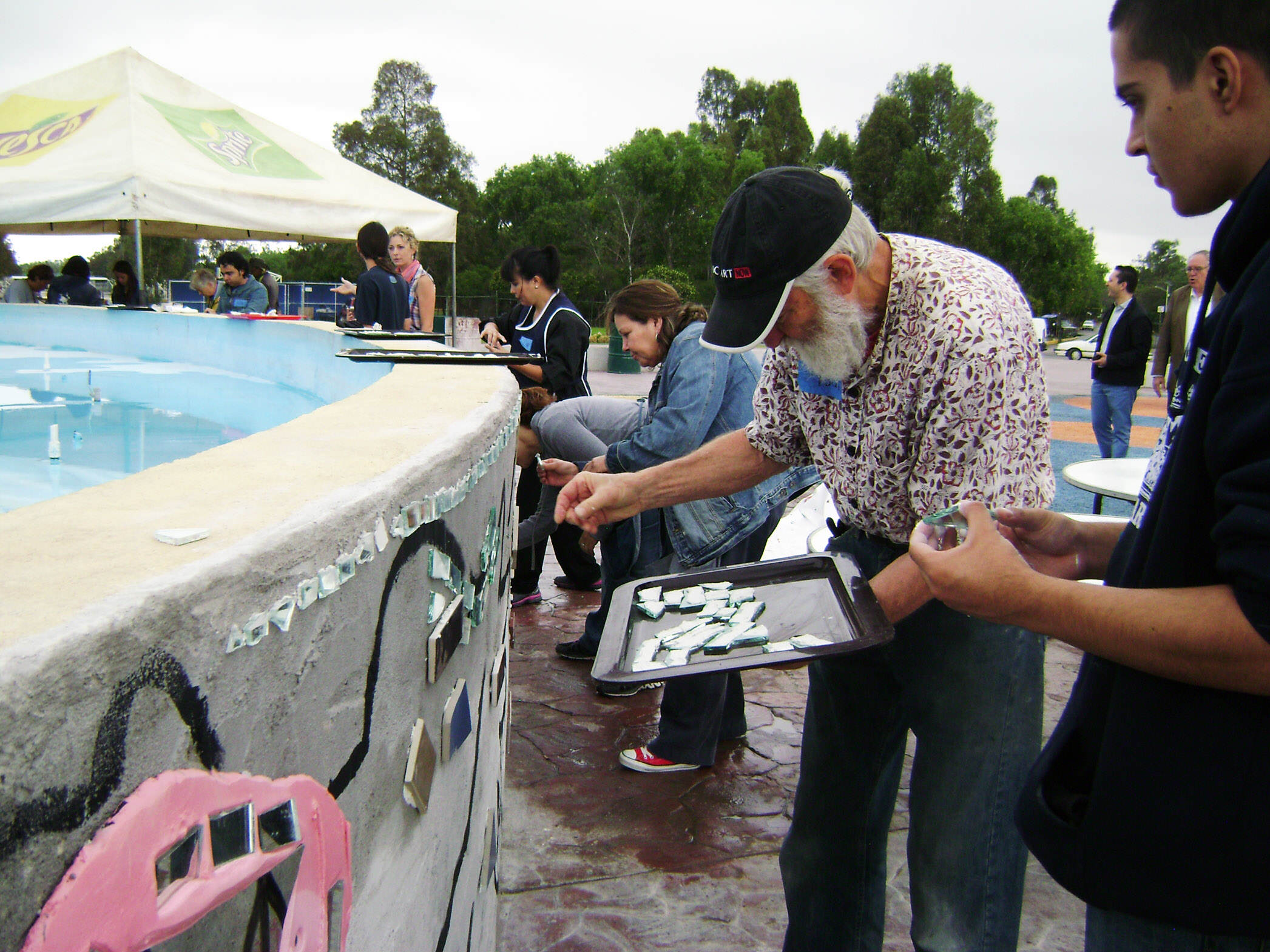 A efecto de avanzar en el Trabajo, Isaiah Zagar plasmó su diseño en la fuente con antelación, además de que trabajo por sí sólo un tramo de la fuente para poner la muestra de lo que deberán ir haciendo los 46 participantes, para concluir el martes entrante.