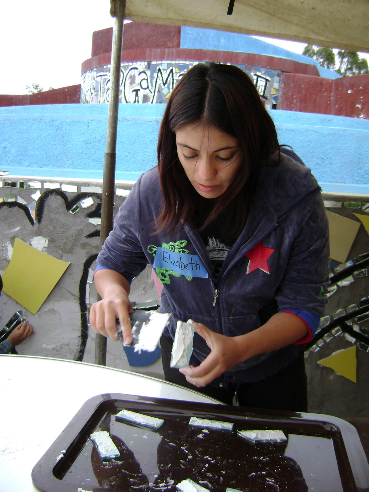 Más adelante comentó que aunque buena parte del taller fue patrocinado, el Museo de Arte Contemporáneo también tuvo que realizar algunos gastos para material, como es el caso de una compra de azulejo de Dolores Hidalgo, se compró espejo, cemento, arena y marmolina, de modo que el costo del taller de 1 mil pesos por participante resulta meramente simbólico.