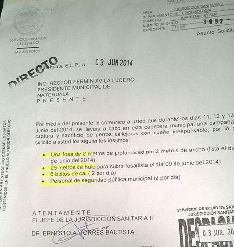 El día de hoy se llevo acabo una marcha para exigir sea detenido el maltrato y sacrificio sistemático de perros, marchando rumbo al palacio municipal. El alcalde de Matehuala Fermín Avila, no recibió a los informes y por otra parte estos fueron agredidos por colaboradores, personal de seguridad e incluso hasta regidores .