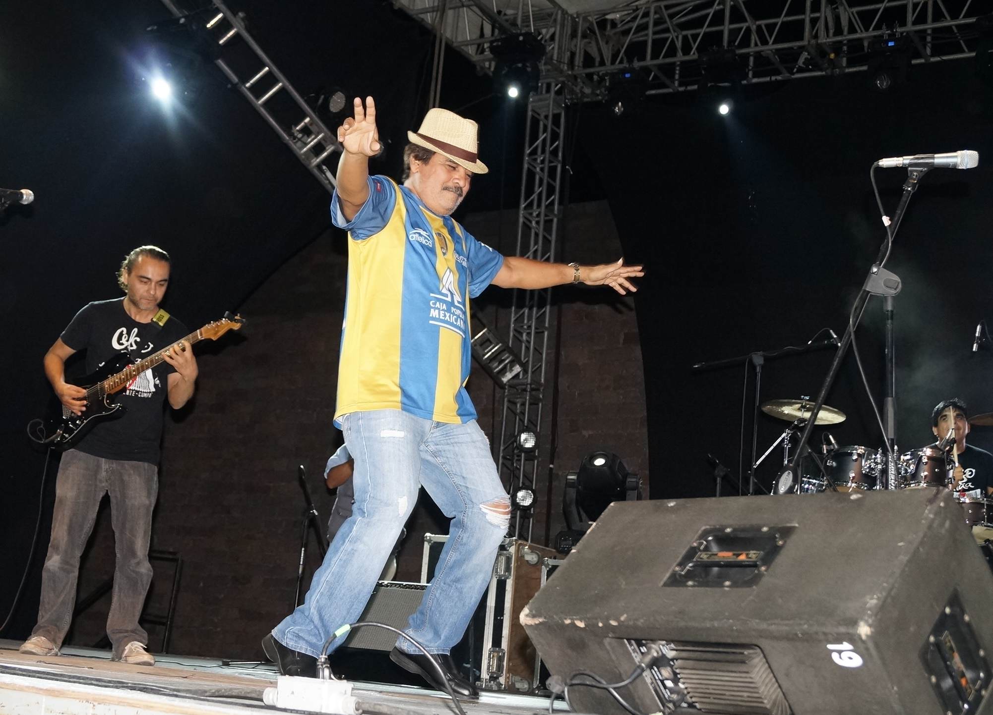 Un admirador le obsequió una camiseta del equipo Atlético San Luis y el músico ¡se puso la camiseta” ,lo que provoco una ovación de los asistentes.