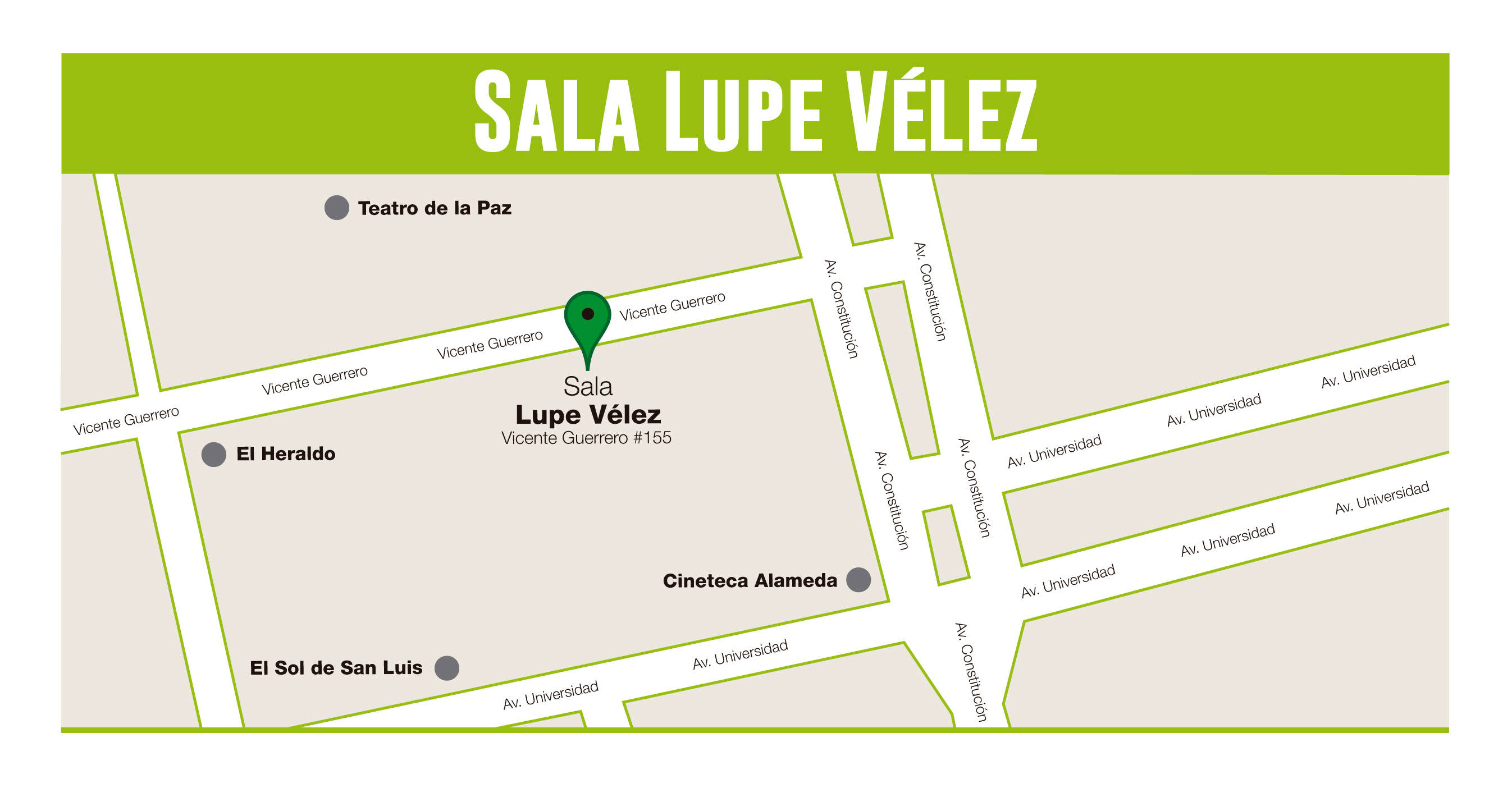 Sala Lupe VélezMaría Guadalupe Villalobos Vélez, nacida un 18 de julio de 1908 en San Luis Potosí fue una actriz mexicana que comenzó su carrera en México como bailarina, antes de mudarse a los EE.UU. para dedicarse a ser actriz de la naciente industria del cine. Su primera aparición fue en 1927 en la cinta El Gaucho.