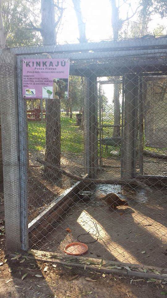 En especial se mostró la imagen de la jaula de un kinkajú, un animal originario del Sur de México y cuyo territorio se extiende hasta la selvas húmedas de América del Sur. Su vida es nocturna y casi todo el tiempo de su vida se la pasa arriba de la copa de los árboles, sin embargo la jaula de este pequeño no presenta las condiciones apropiadas para su especie, al tener solo un tronco seco atravesado. Por otra parte se pueden ver varios objetos que no parecen apropiados para el animal, como una estructura de metal que se desconoce su función. Igualmente se puede apreciar un poco de basura en el sueño de la jaula y en todas las fotos al kinkajú, caminando sobre el suelo,siendo esto algo no natural de acuerdo a su forma habitual de vida.