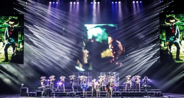 Posteriormente “El Potrillo”, tomo una silla se puso al frente del escenario solo se quedaron los músicos para comenzar la versión acústica de tres canciones en donde solo expreso “voy cantarles como si estuvieran en la sala de casa” y como fondo una gigantesca pantalla, en donde inició con “Que voy hacer con mi amor”, “Me dedique a perderte” y “Si tú supieras”, en todas sus interpretaciones los músicos destacan por su gran calidad y armonía, pero cabe señalar Isidro Martínez, su trompetista quien desde hace mas de ochos años lo acompaña destacó por su gran interpretación en los solos, no se diga en la canción “Abrázame”, la cual abre la parte en donde comienza la interpretación de la música mexicana.