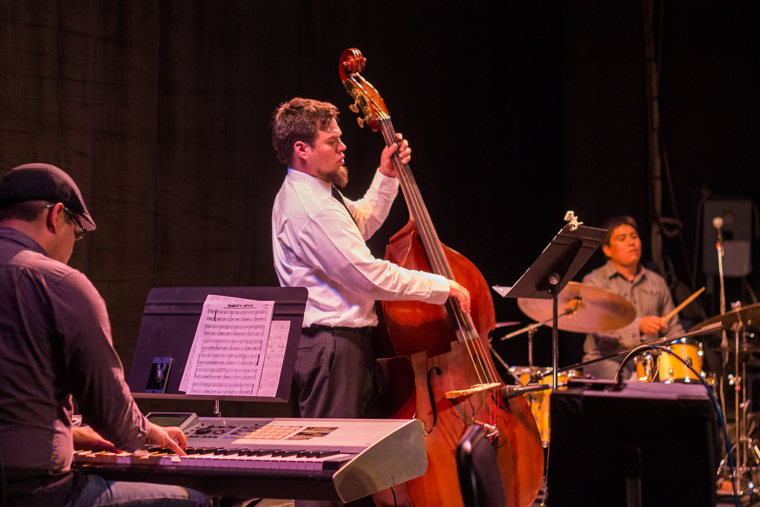 A las 19:30 horas el programa musical a cargo de la agrupación juarense comenzó con el tema But not for me, de los años 30. El repertorio continuó con piezas como Moment’s notice, In Walked Bud, Strollin, Pájaro verde, Nahual, así como un homenaje al famoso jazzista Bud Powell.