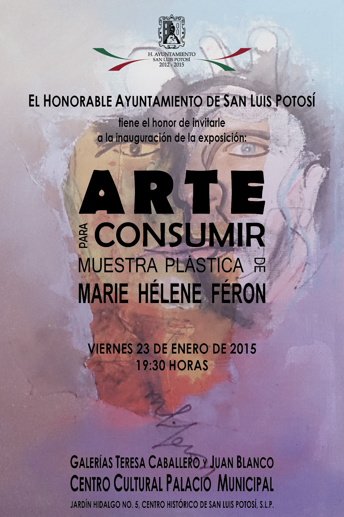 Arte para consumir, la reciente obra plástica de Marie Hélene Féron, conformada por piezas realizadas sobre tela, papel, y barro, con medios tales como acrílicos, tintas, pastel, lápiz, grabado y collage, será inaugurada el próximo viernes 23 de enero en el Centro Cultural Palacio Municipal, y estará abierta hasta el domingo 22 de febrero con entrada gratuita.