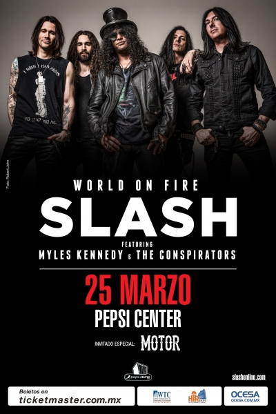 Slash, uno de los mejores guitarristas de todos los tiempos y Miembro del Salón de la Fama del Rock and Roll, regresará a México para ofrecer tres espectaculares y explosivos conciertos en marzo próximo. Primero, se presentará en el Pepsi Center de la Ciudad de México el 25 de marzo, seguirá el 26 de marzo en el Teatro Estudio Cavaret de Guadalajara y por último llegará el 28 de marzo al Auditorio Banamex de Monterrey.