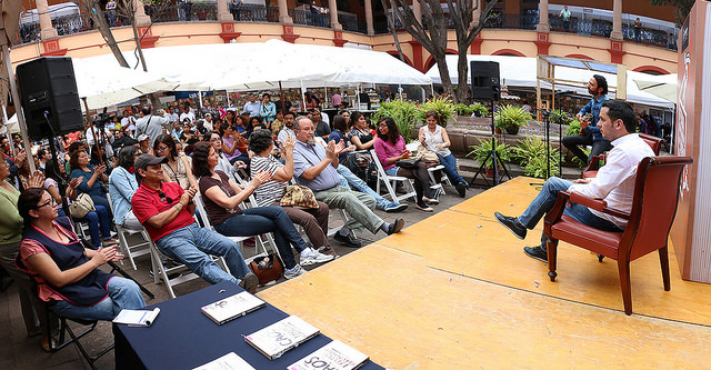 Fernando Rivera Calderón  (3)El autor, locutor y cantante Fernando Rivera Calderón estuvo presente en el último día de actividades de la Feria Nacional del Libro de la Universidad Autónoma de San Luis Potosí, ante un numeroso grupo de público, presentó su libro Diccionario del Caos, un texto que rompe el esquema de las definiciones como se conoce hasta ahora, con un toque de humor, ingenio y contra las reglas.