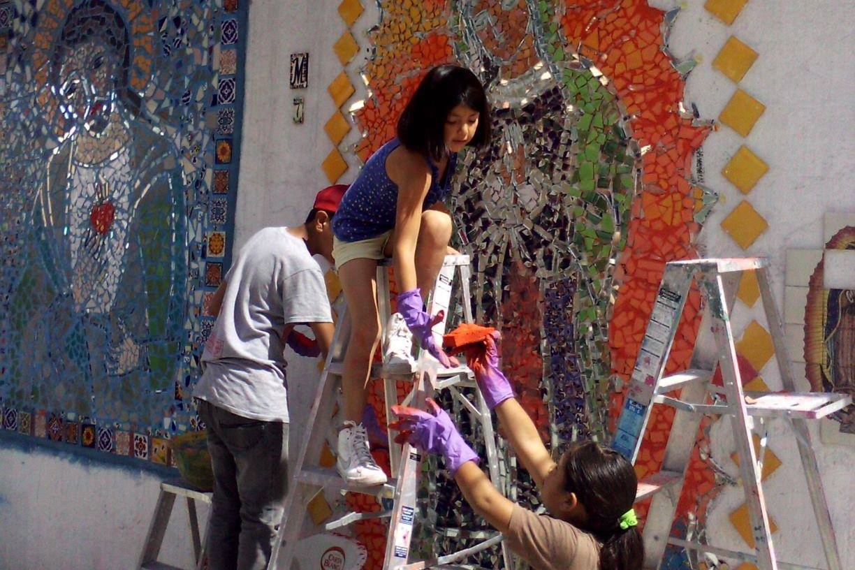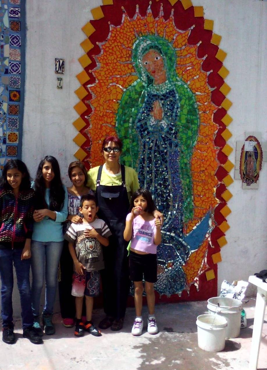 Marissa Martínez y los niños del callejon concluyeron los murales En el Centro de la ciudad de San Luis Potosi, en el Callejón de la Yedra, los niños que lo habitan, se han convertido en muralistas, han hecho de una pared de una antigua fábrica de hielo, un mural de arte de mosaico, embelleciendo este espacio, antes un caos lleno de infinidad de chunches.