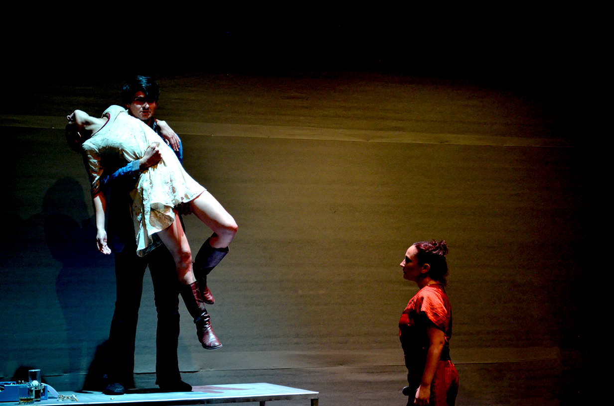 El montaje se construye a partir de la relación de tres personajes: El poeta, un loco cuya condena es su amor no correspondido por la Actriz. Ella, incapaz de amar a nadie más que a sí misma. Y la Cantante, que se aparece como un demonio en la cabeza de la pareja. El triunfo del diablo no es aniquilar al ser humano, sino que este lo haga sobre sí mismo. El mal contra el otro, es parte de la naturaleza, pero el mal contra uno mismo es antinatural: la negación de la vida misma. Se trata de una pieza coral. Un paisaje lírico que atiende más a la subjetividad emocional que a una narrativa biográfica de las figuras referenciales que inspiran a los personajes (el poeta español Leopoldo María Panero y la cantante brasileña Elis Regina).