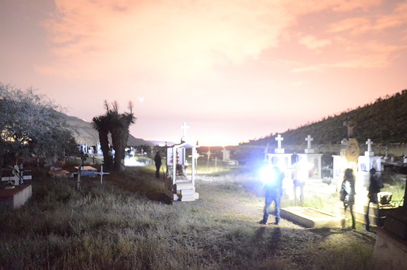 Finalmente los visitantes pudieron ingresar al actual cementerio del Cerro de San Pedro, donde en completa oscuridad y con una brillante luz en el horizonte de todas las luminarias de la ciudad de San Luis Potosí, terminaron el recorrido entre tumbas y una última historia.