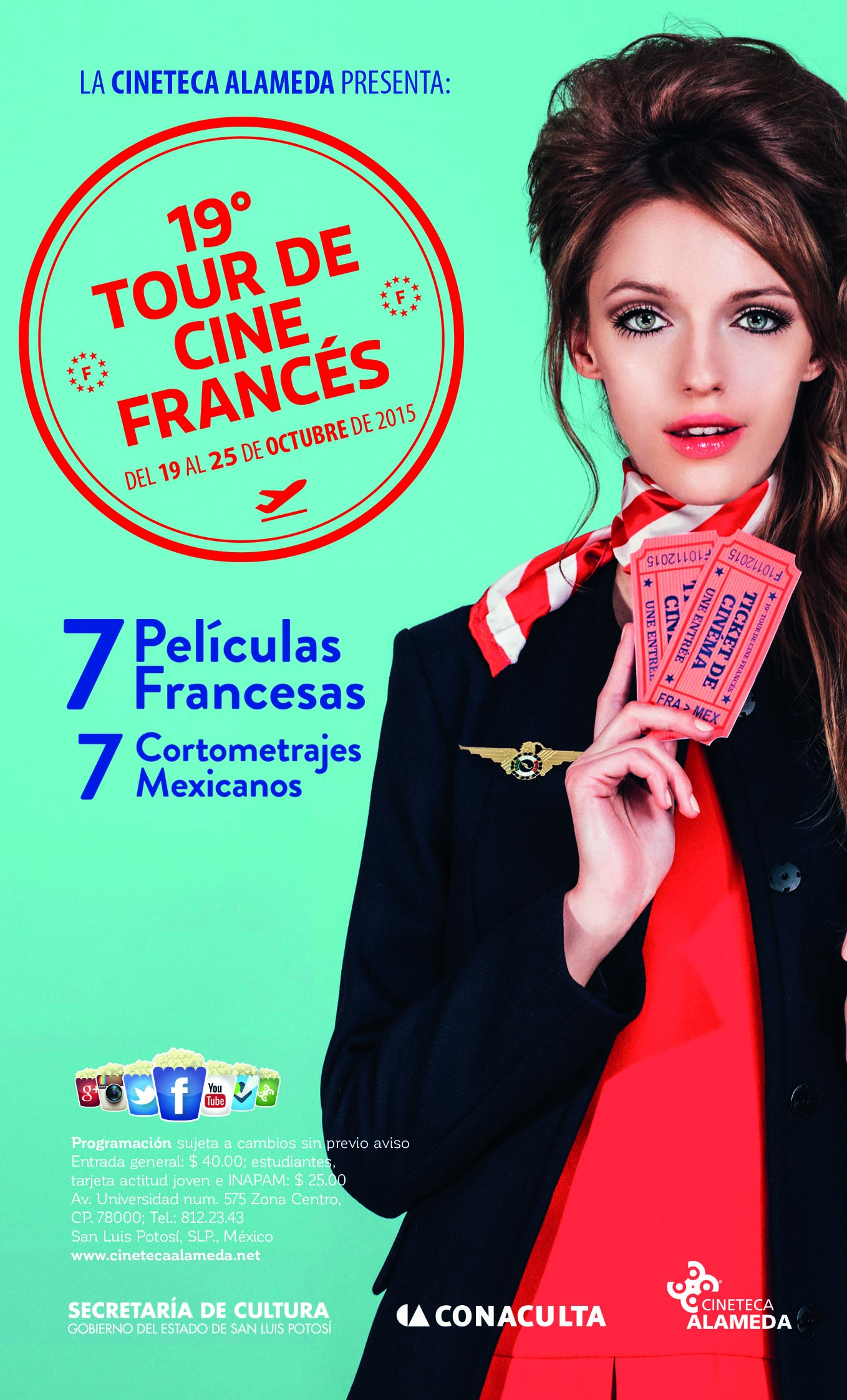 A partir del 19 de octubre y hasta el 25 de octubre, la Secretaría de Cultura de Gobierno del Estado de San Luis Potosí a través de la Cineteca Alameda, invita al público en general a disfrutar de lo mejor del cine francés contemporáneo en la edición 2015 del Tour de Cine Francés.