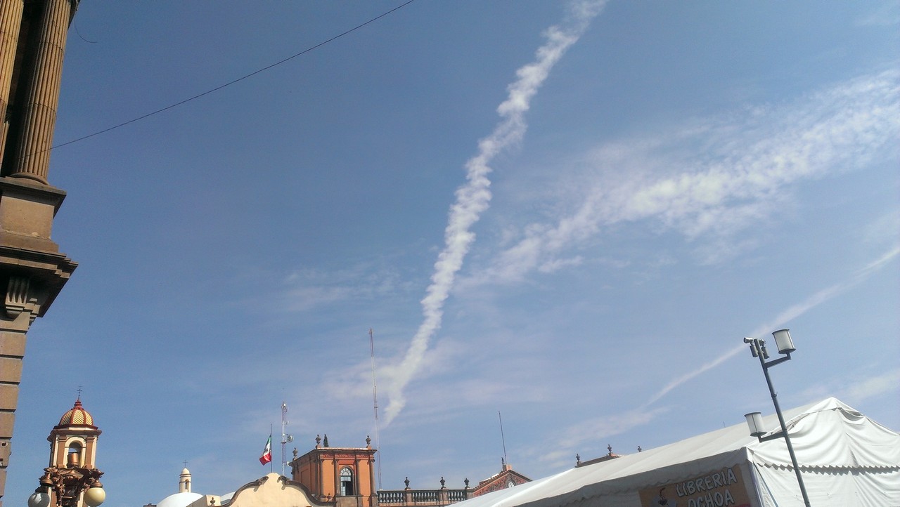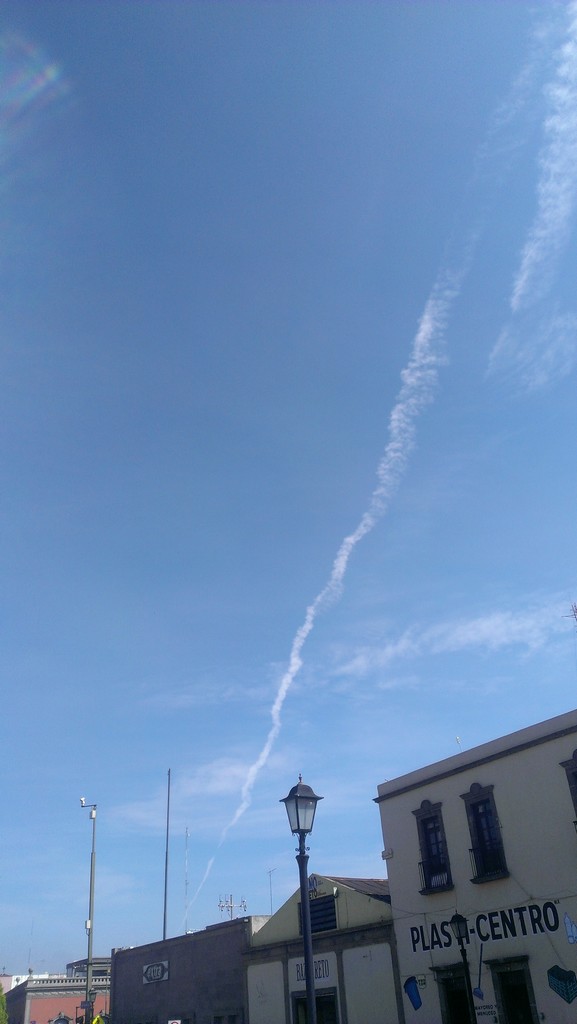 Aunque la forma relativamente no es misteriosa pues lo hemos visto muchas veces cuando un avión deja un rastro de agua, en esta ocasión llamo la atención que desde temprano se estuvieron presentando estas formaciones sin que aparentemente ningún avión apareciera, además de que su rastro dura aún más y finalmente el porque se estén presentando desde la madrugada hasta cerca de las 11 hrs.