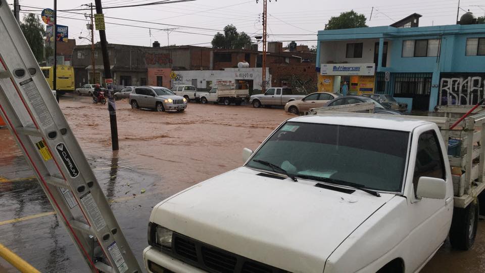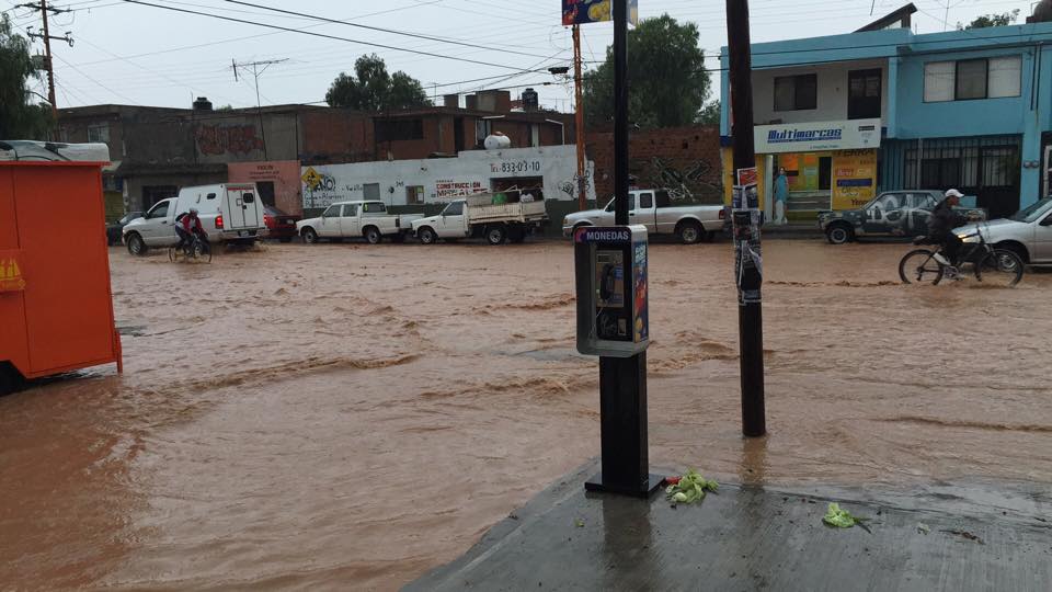 Por más de dos horas se extendió la lluvia que de forma inmediata inundó el Boulevard Río Santiago y Españita, además de el paso a desnivel frente a Plaza San Luis, el Puento Pemex, el Puente Othón y el Puente Naranja, prácticamente se paralizo el tráfico en la ciudad.
