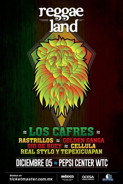 Todo se encuentra listo para el Reggae Land; una noche llena de grandes actos musicales, encabezado por los argentinos de Los Cafres, y la presencia de los proyectos Los Rastrillos, Ojo de Buey, Golden Ganga, Cellula, Real Stylo y Tepexicuapan. La fecha pactada para esta intensa tarde-noche será el sábado 5 de diciembre en el Pepsi Center WTC. La venta general comenzará a partir del miércoles 21 de octubre en las taquillas del inmueble y a través del Sistema Ticketmaster.