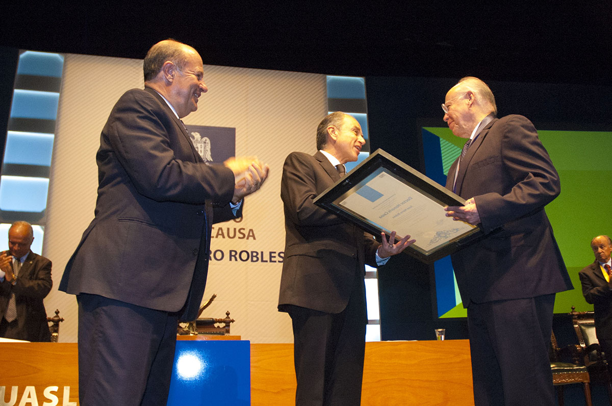 La UASLP lo distingue con su más alto reconocimiento, por su amplia trayectoria académica, de servicio público y liderazgo en el ámbito de la educación superior. Y por contribuir en el desarrollo educativo del país desde el sistema universitario, con sensibilidad e impulso a la juventud y por su constante defensa de la autonomía.