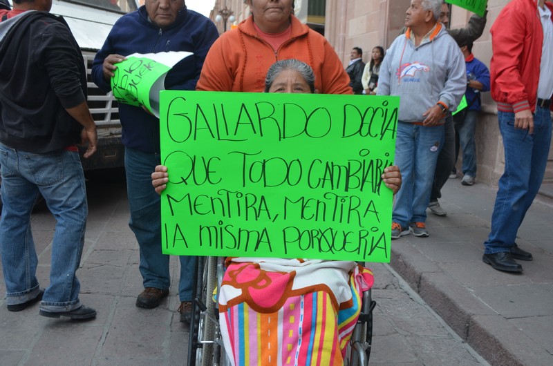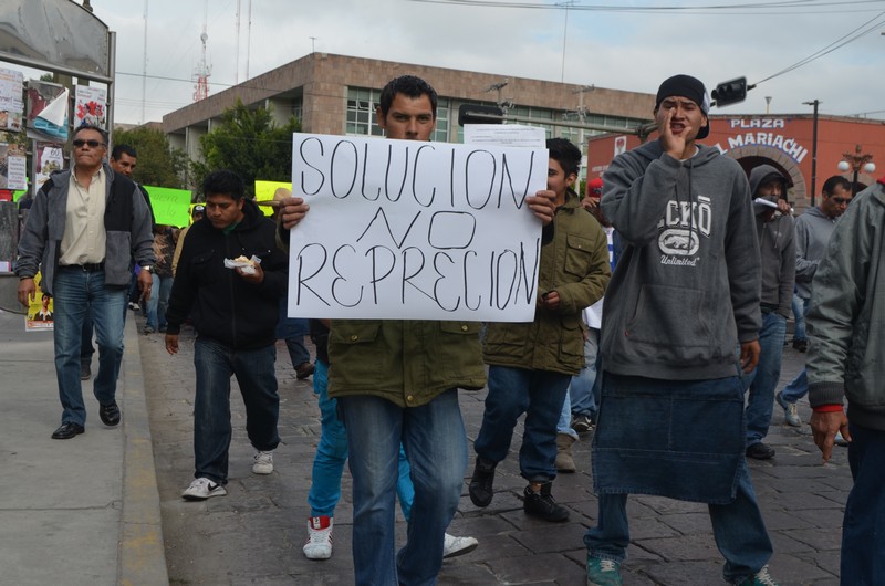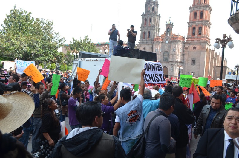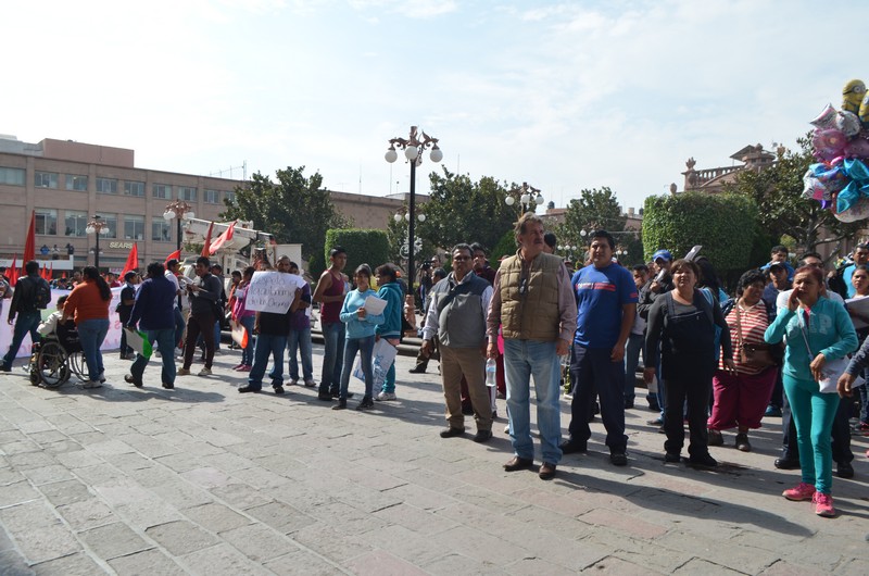 A su llegada a Plaza de Armas, se trasladaron a manifestarse fuera del Congreso del Estado donde gritaron improperios contra el cuerpo legislativo señalando que únicamente se legisla en contra del pueblo.