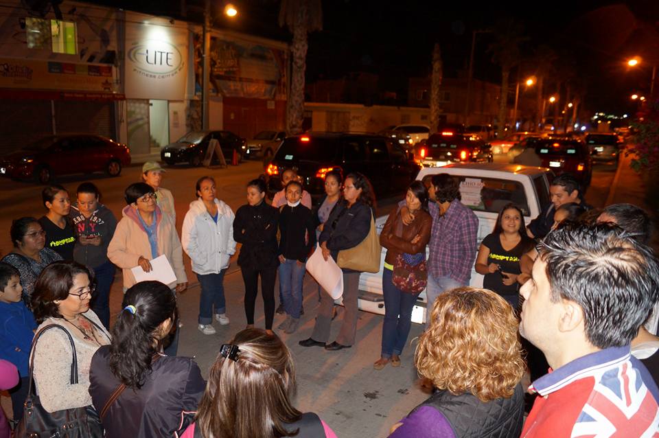 Se solicitó permiso a los vecinos para ingresar en las áreas comunes para manifestarse a lo que accedieron los presentes, una vez ingresados llegaron dos vehículos de la Policía Estatal, uno con número de patrulla 2303 realizando ademanes de intimidación pero después se retiraron al ver que la manifestación se realizaba de forma pacífica.