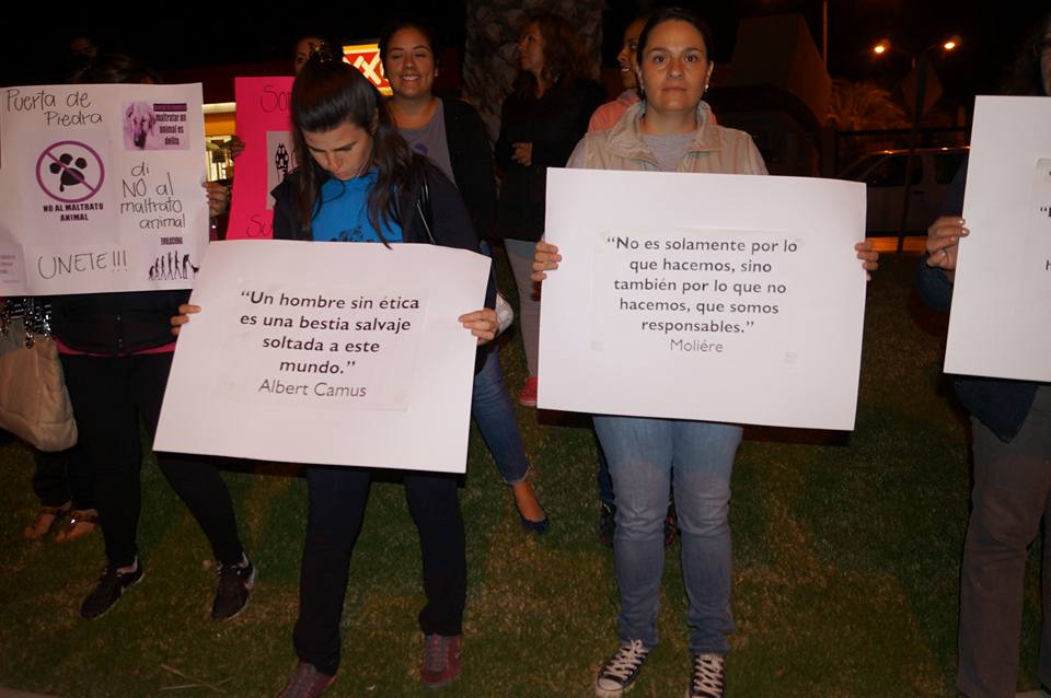 Cerca de las 8:30 de la noche del día de ayer un grupo de más de 30 activistas se reunió en las afueras de la entrada principal de Puerta de Piedra para emprender una manifestación en contra de la mencionada empresa de seguridad por el uso de violencia desmedida contra un perro el cual resultaría con lesiones debido a los golpes que propinaron elementos de seguridad con sus macanas.