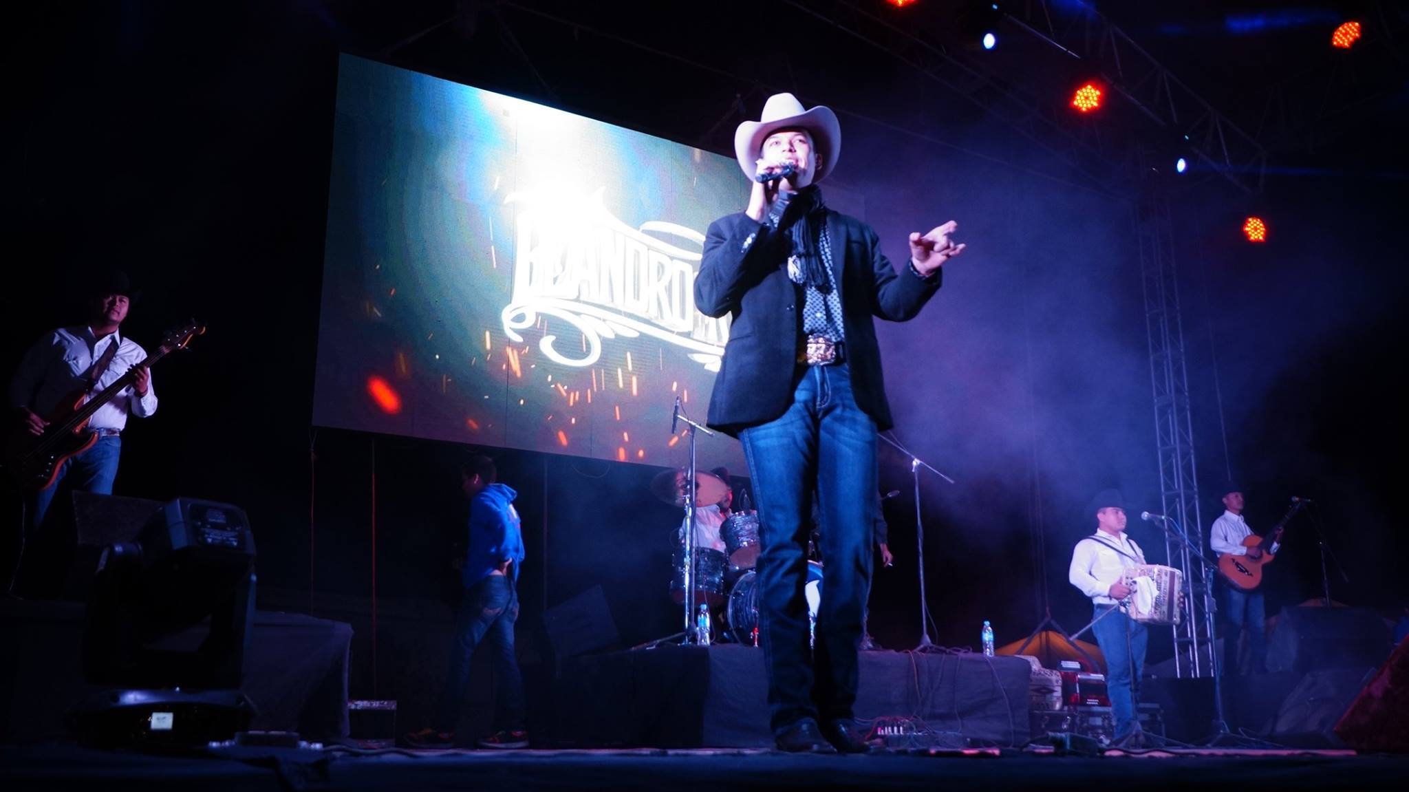 Posteriormente subió al escenario del teatro del pueblo el cantante Leandro Ríos, quien por espacio de 2 horas deleitó al público asistente con sus canciones como: Debajo del Sombrero, Hay un Ranchero en la ciudad, entre otras canciones del género norteño.