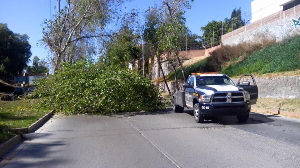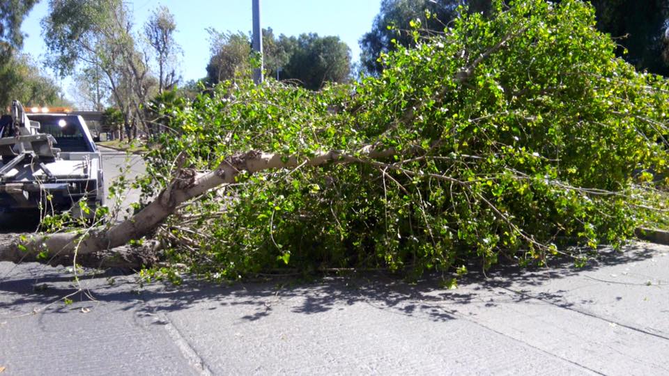 Los principales reportes vienen de espectaculares y árboles, aunque también se ha dado aviso de la caída de poste de luz y desprendimiento de anuncios debido a las fuertes rachas del viento.