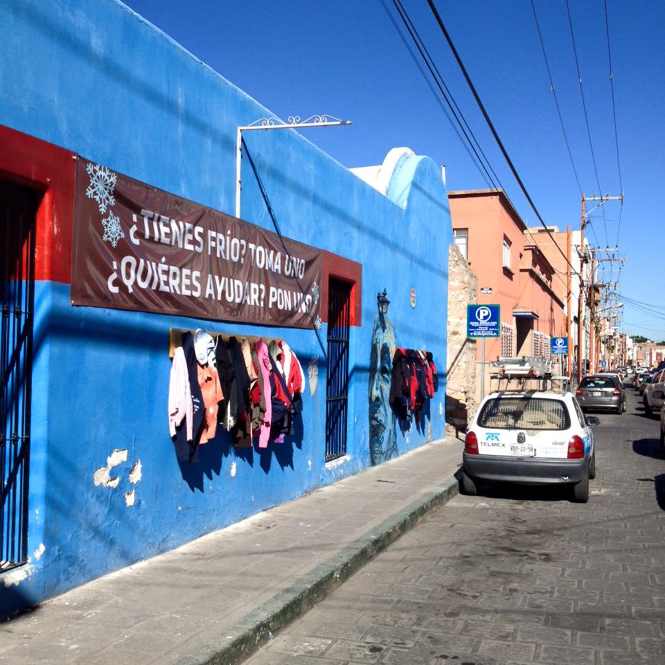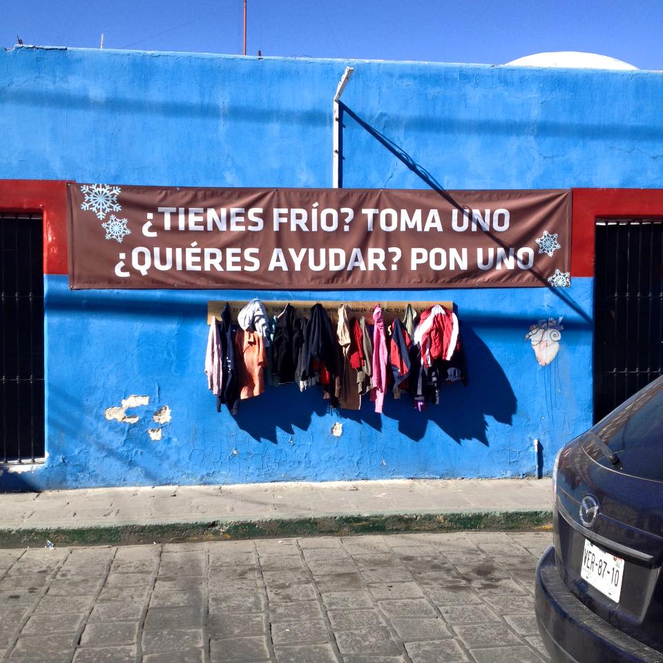 Bóvedas tendedero públicoSan Luis Potosí.- El restaurante-bar y casa cultural “Las Bovedas” ha decidido instalar un tendedero público en su exterior con la finalidad de ayudar a personas que pasen frío durante estás épocas de bajas temperaturas.