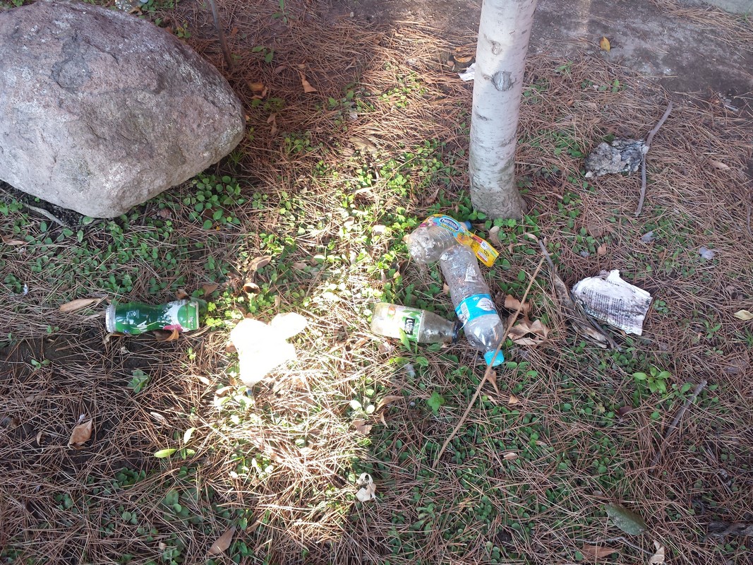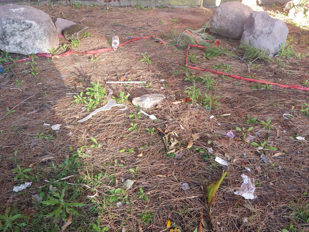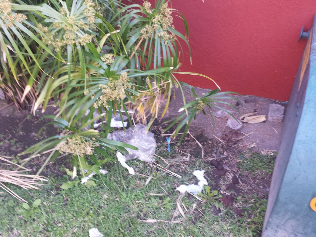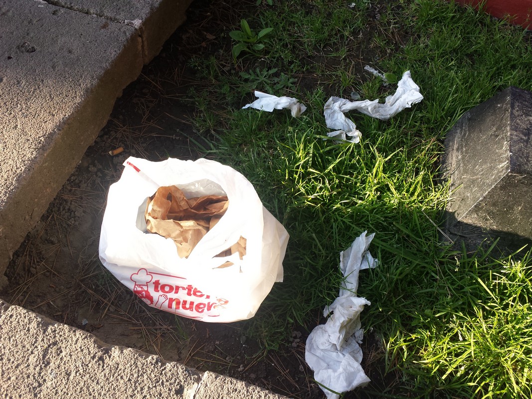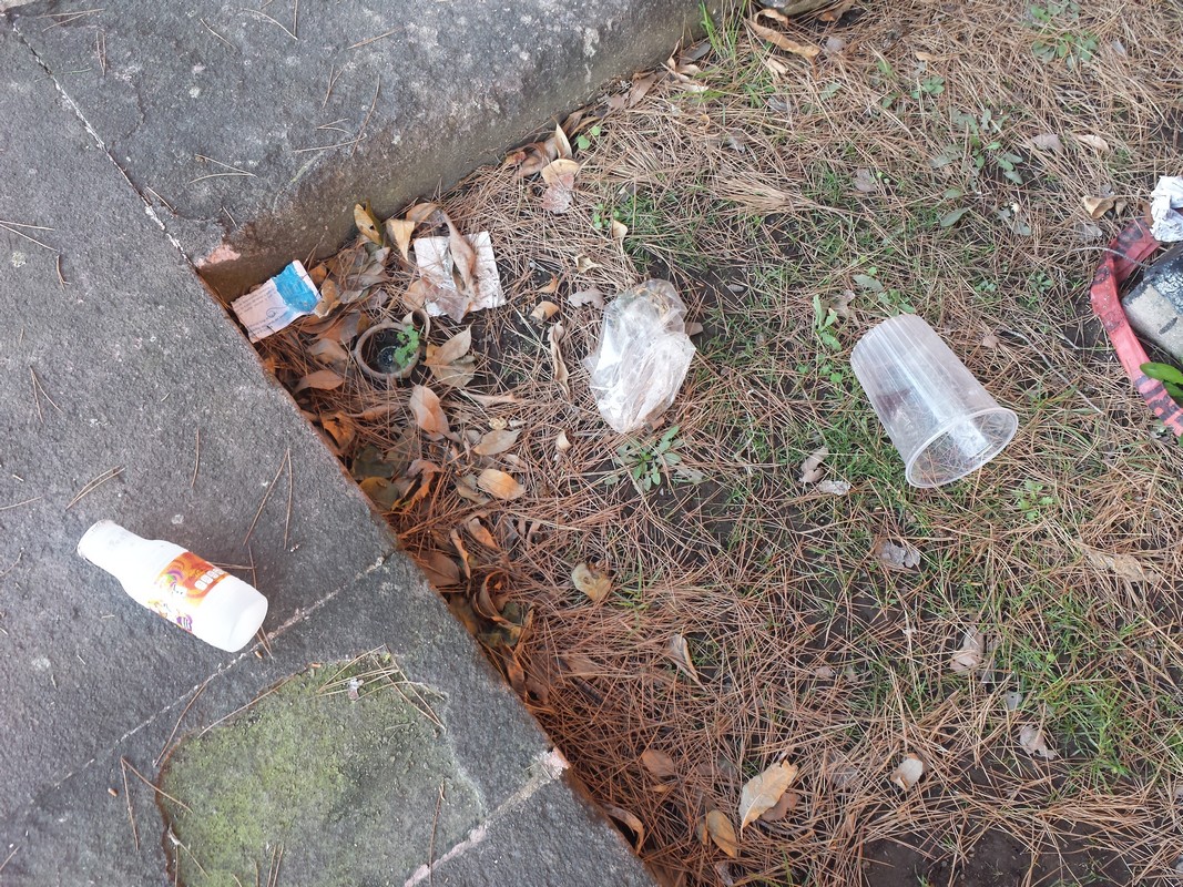 Con basura de todo tipo como envolturas, botellas, lastas de cerveza, comida y más, se puede encontrar feamente adornadas las áreas verdes de este jardín