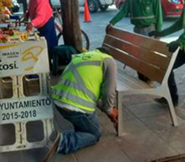 En primero momento aclaró que dicho cambio habría sido gestionado en la administración pasada, pero que por instrucciones de Ricardo Gallardo se ordenó detener la instalación de dichas bancas y tratar de solucionar el problema con la finalidad de que se conserven las anteriores.