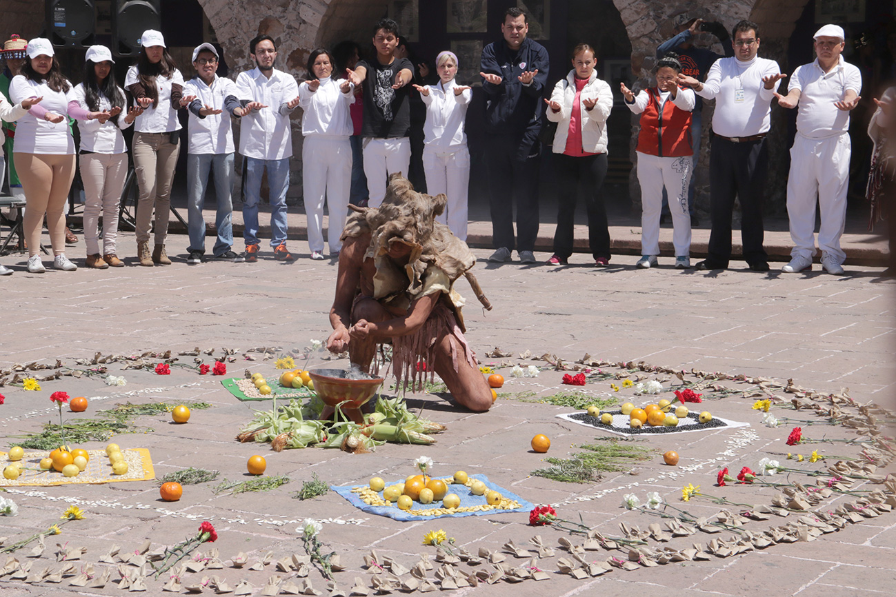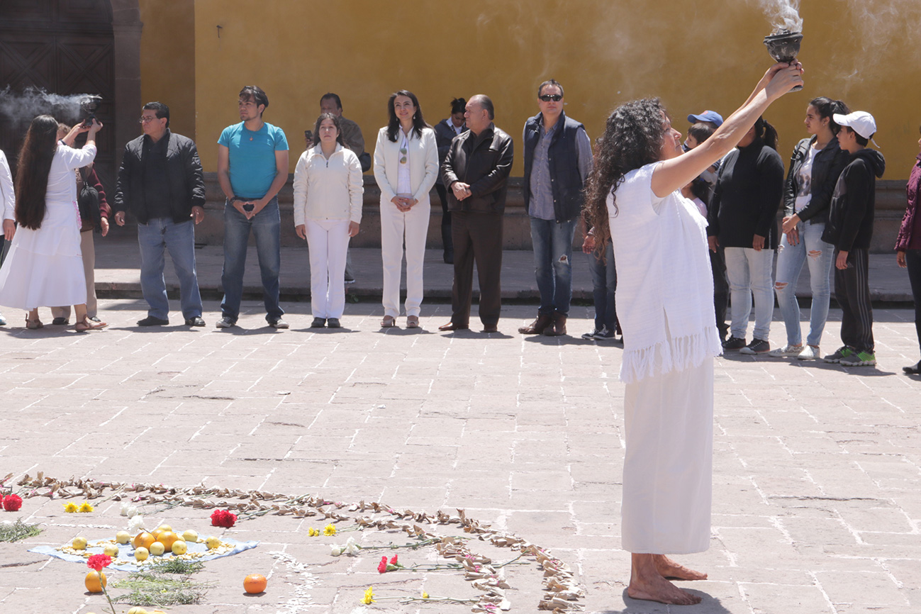 La presencia de los huicholes se logró gracias a la coordinación del Grupo Escénico “Doble Espacio”, bajo la Dirección del Maestro Gerardo Rivera “Kabuby”, quienes llevaron frutas para que los participantes realizaran la ofrenda a los dioses, como símbolo de agradecimiento por la llegada de la Primavera.