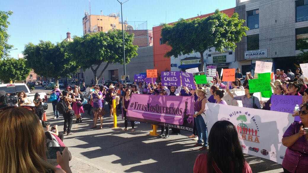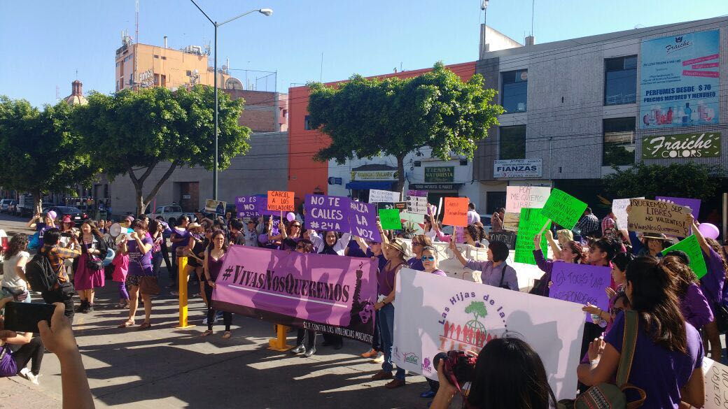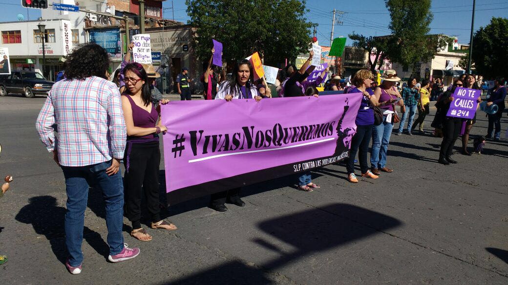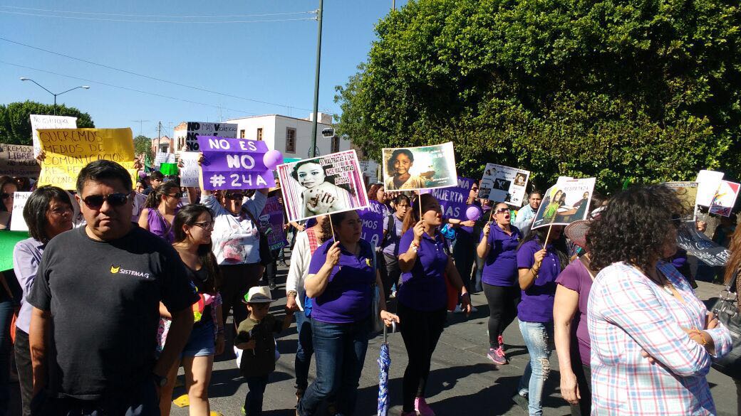Con colores rosas y lilas, pancartas y mensajes, decenas de potosinas salieron a las calles iniciando desde el Jardín de Tlaxcala y hasta la Plaza de Armas a través de Eje Vial pidiendo políticas públicas más eficaces contra la violencia de género, a favor de la autodeterminación y el aborto, exigiendo una justicia pronta y castigos más severos cuando la víctima se mujer o niña, así como más en sectores como el laboral y político.