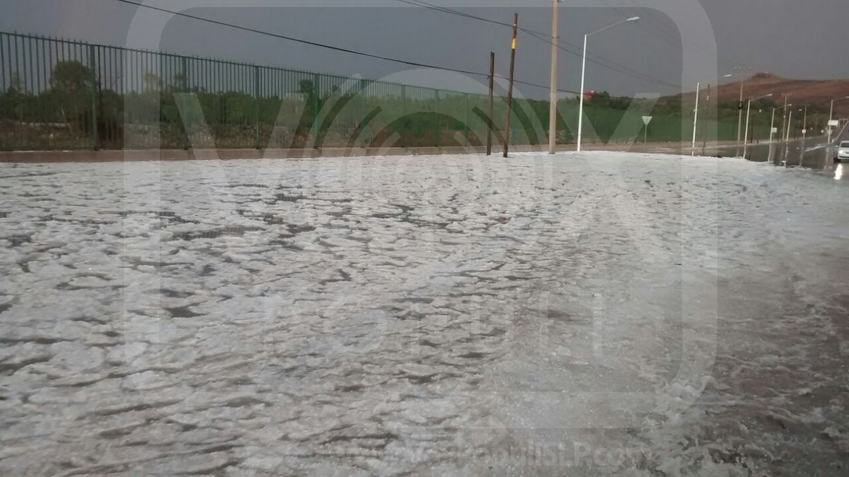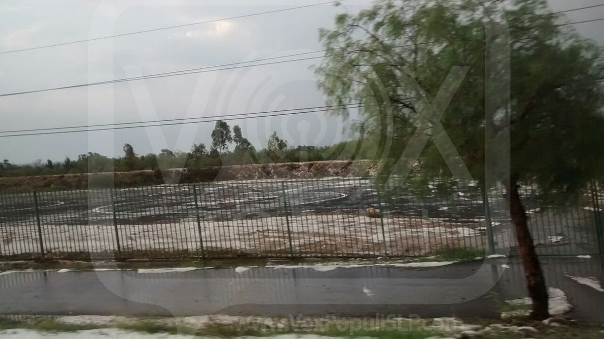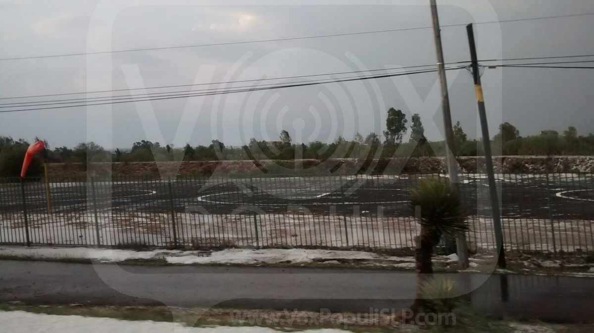 San Luis Potosí.- La tarde del día de hoy se registró un fuerte granizo en la zona oriente de la capital potosina, provocando un paisaje blanco además de inundaciones.