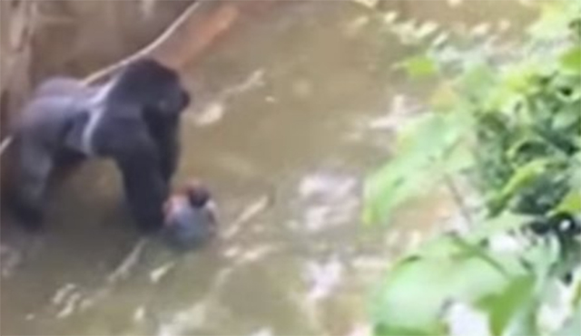 Al parecer el descuidado niño de 4 años habría subido por una reja divisora y cayó de una altura de entre 1.8 y 3.6 metros de altura, a donde un gorila de nombre “Harambe” de 181 kilogramos se le acerco para inspeccionarlo.,