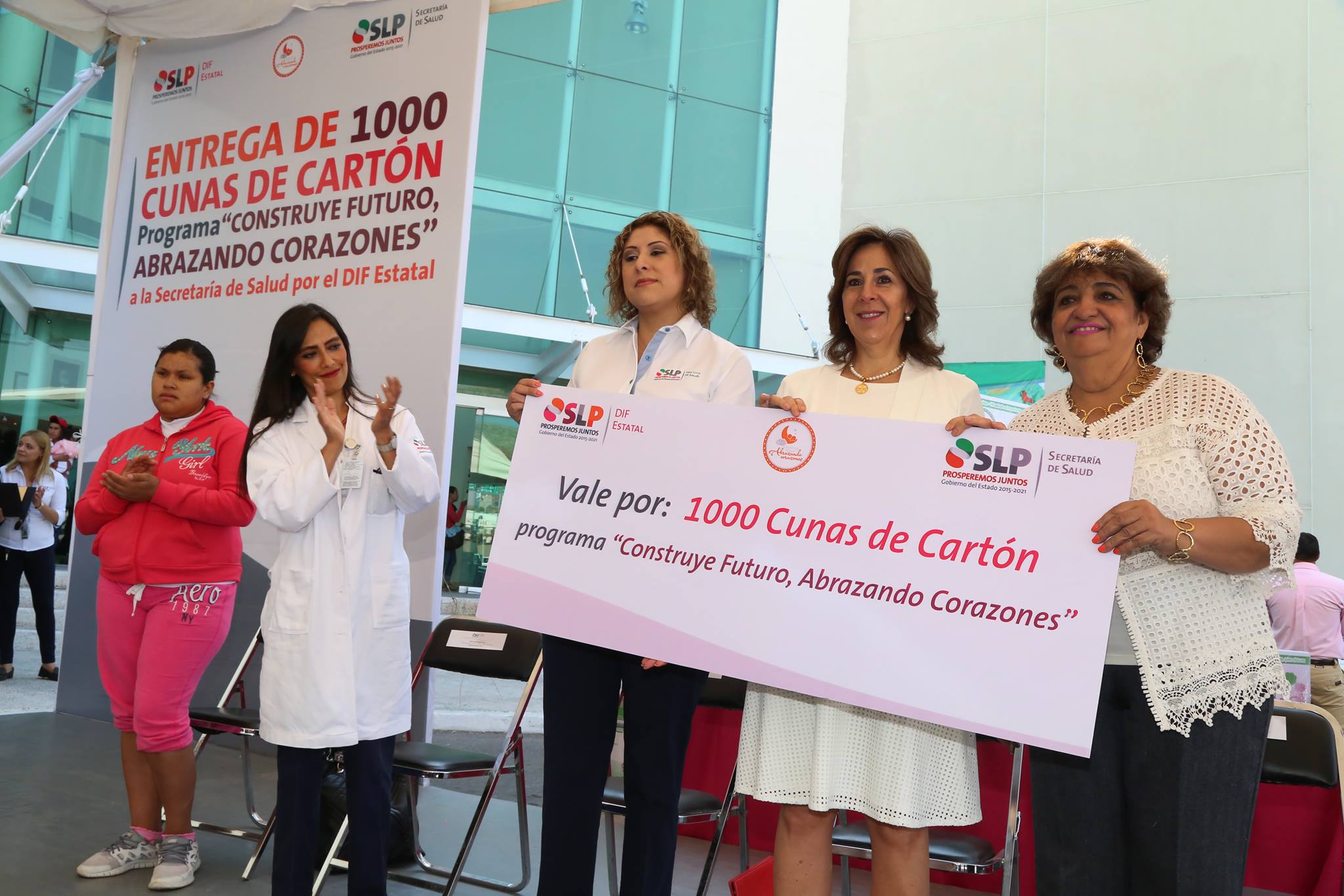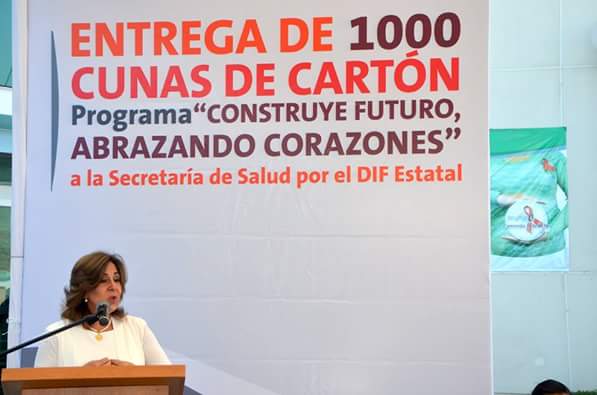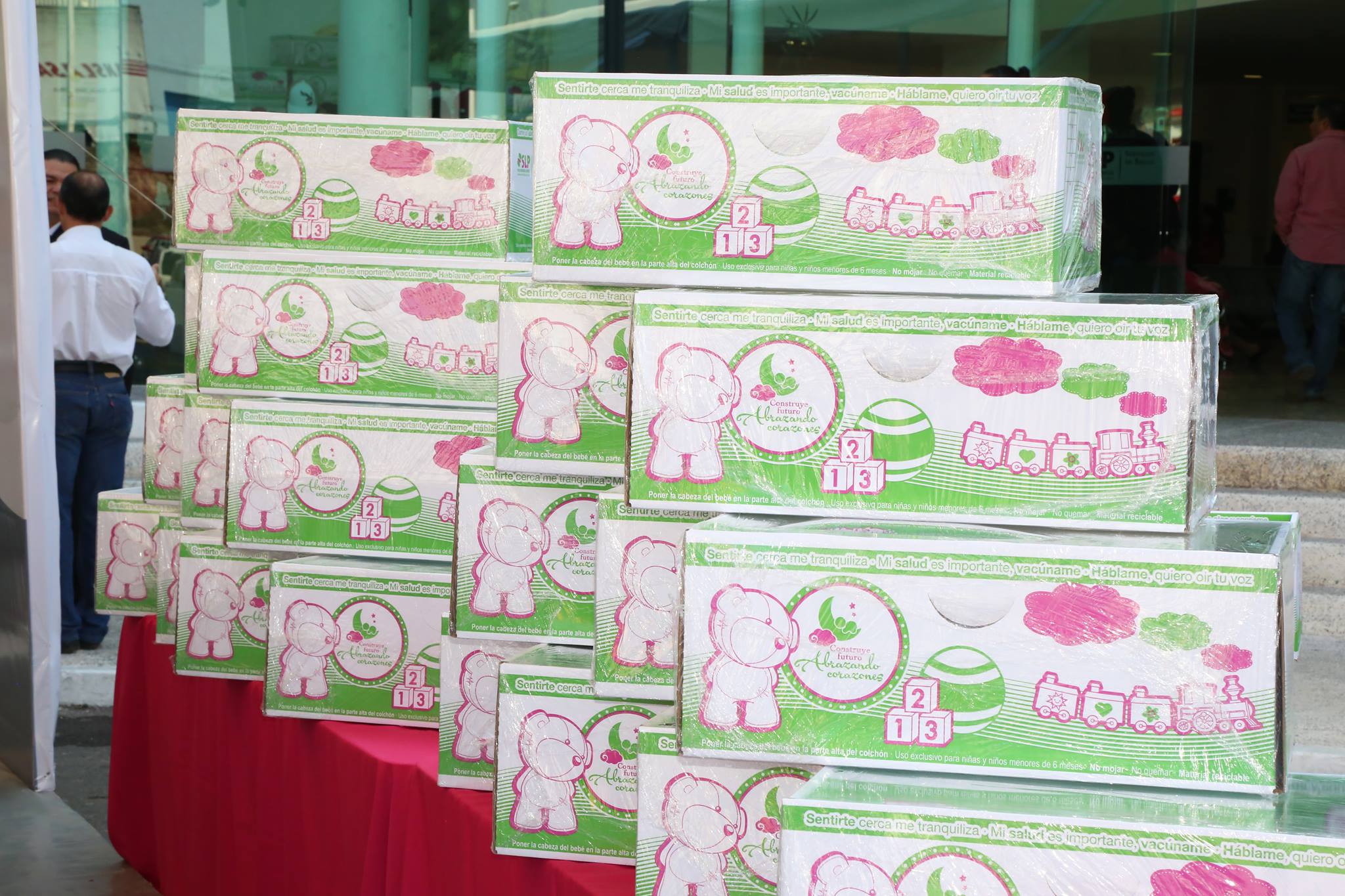 La entrega de las cunas de cartón iban acompañadas en su interior cuentan con un paquete de artículos como un colchón anti-reflujo, gorro, pañales, contenedores de plástico, artículos de limpieza, y complementos para la mamá como son ácido fólico y sulfato ferroso.